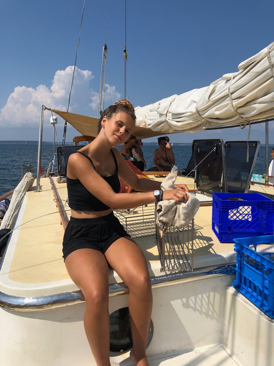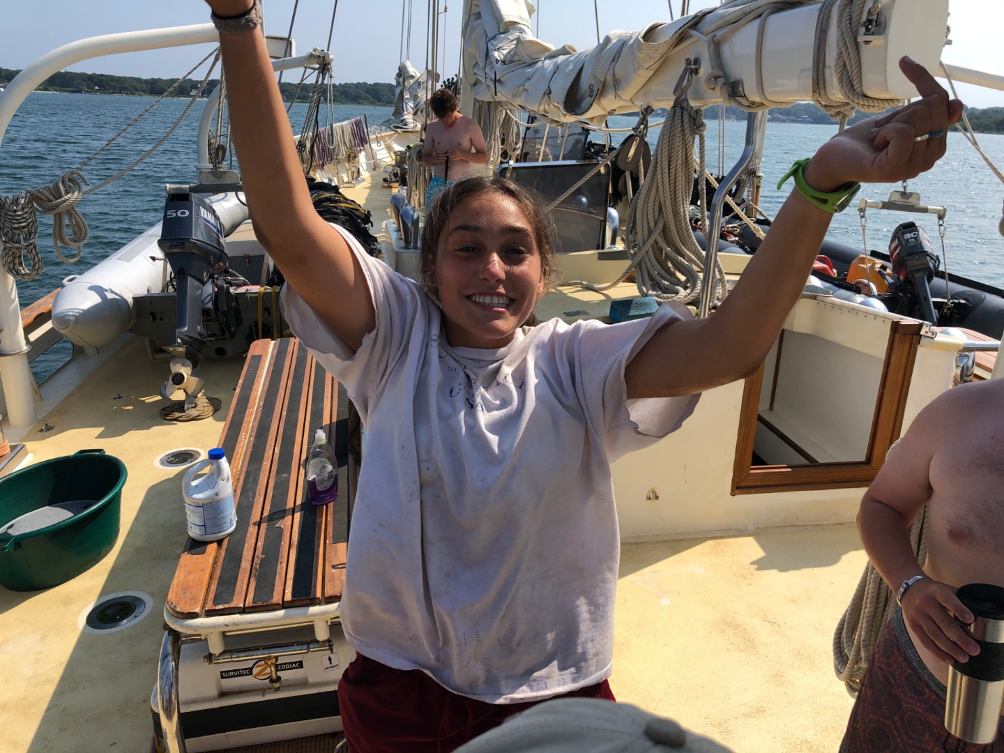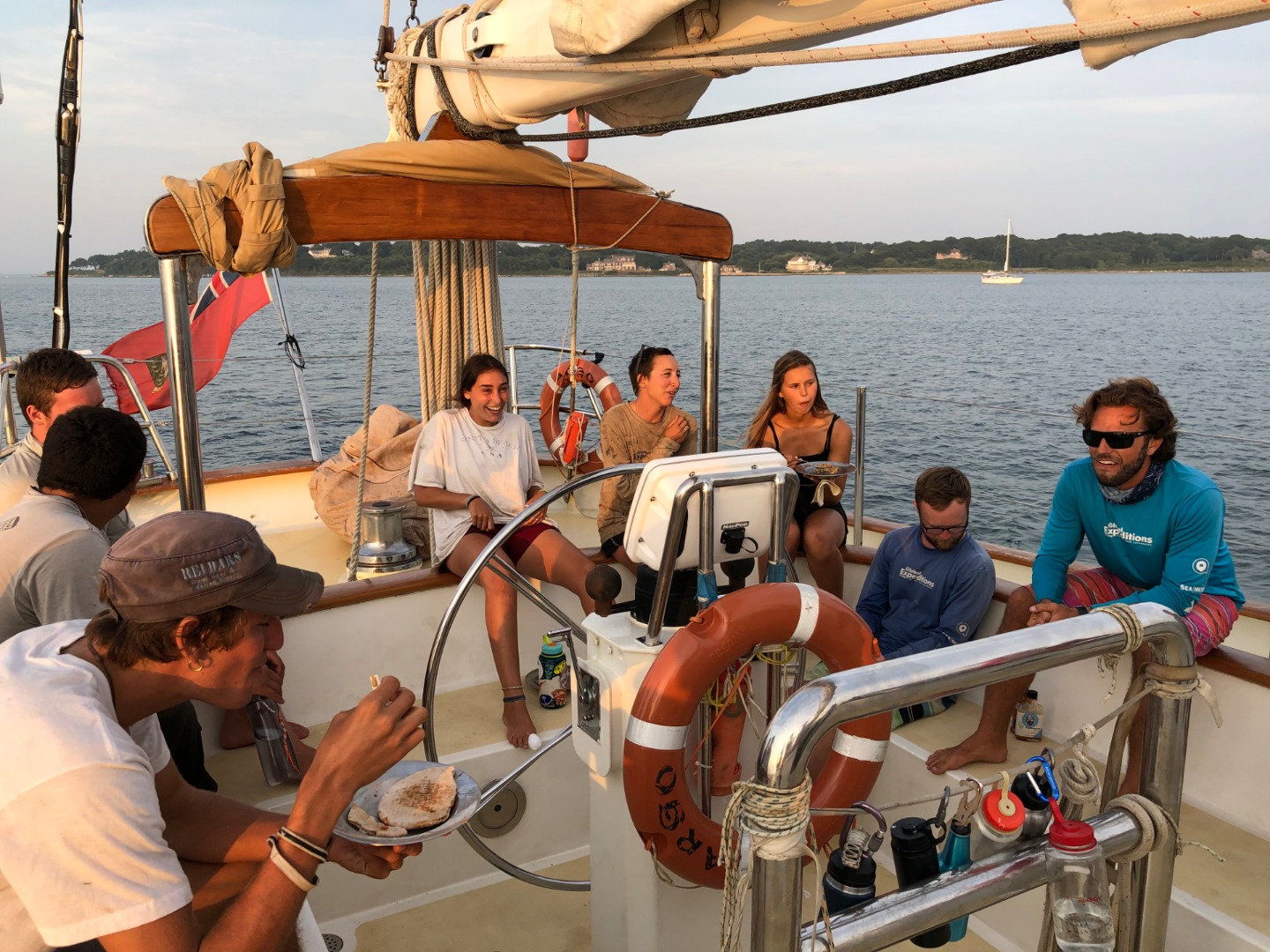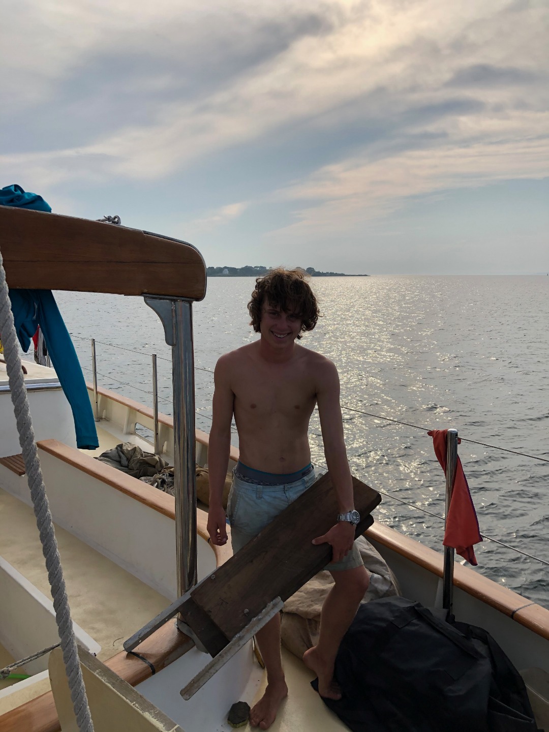 Today some folks on our boat had a 5;45am wake-up so they could head out and walk a trail on a beach nearby. The ones who stayed back woke up at 7 simultaneously to the Hikers coming back. Josh, Katie, and Evan prepared us some awesome Pancakes for breakfast. After the cleanup was done, we raised our anchor and headed out towards Fishermans Island, which is located just of the coast of Mystic. It took us roughly 3 hours to get there. We had lunch and then a brief on our afternoon. We separated into different teams to make the cleanup more efficient. Some people cleaned the Laz, some did the Galley, and others the Grey Water tanks. It took a lot of effort to complete all of these jobs, so we all were super hungry for delicious Shepard’s Pie. We even had to get out Tortillas and Peanut butter because we were so hungry. Tonight will be our last day in Anchorage before we head to Mystic tomorrow.