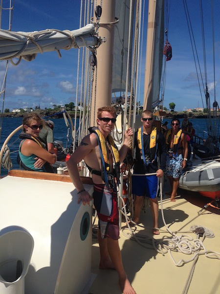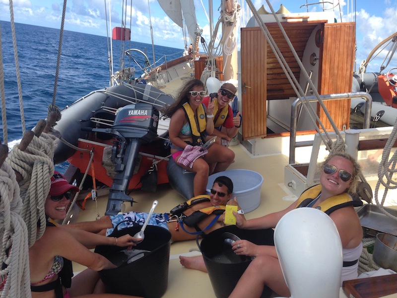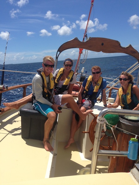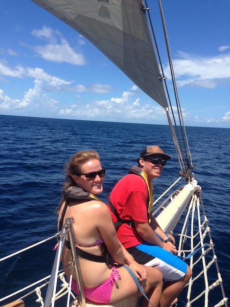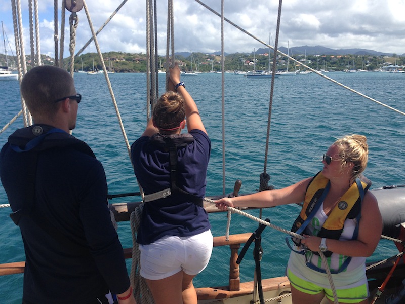 We had a wonderful day sailing aboard Ocean Star. We woke up in Prickly Bay just off of Grenada and prepped the boat for a day of passage. We raised the sails in good time while still at anchor and prepared to head north for the first time this trip! Since this was only a day’s passage, we kept our watches short at just an hour and a half for each team. However, it was so lovely out, and most of us stayed up on deck for the majority of the day. We reached our destination, a small island called Carriacou, just as the Caribbean sun was setting. We dropped anchor off of a beautiful small sandy island and had a pasta Bolognese dinner excellently prepared by James and Brooke. Currently, the crew of Ocean Star is singing the Star-Spangled Banner (to Kris and Nick’s chagrin) as clean-up hurries along. Tonight, everyone has some time to study, shower, and catch up on sleep. Life is fantastic down here; we all send our best back home. Check in soon for more news from OStar as we start our trek north!