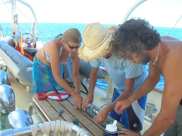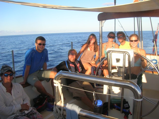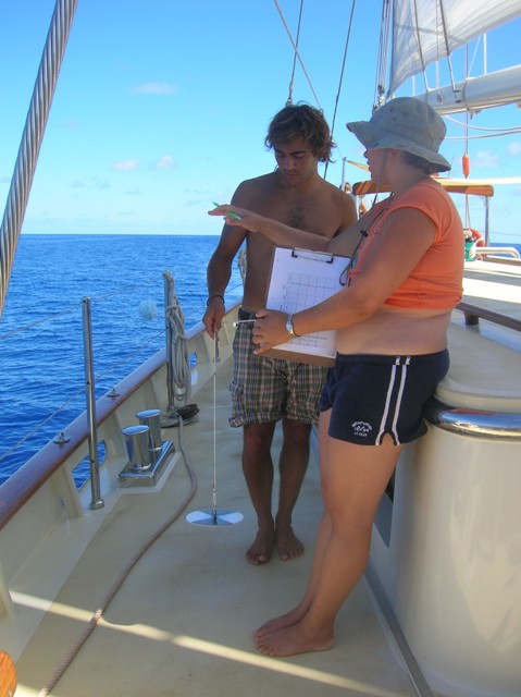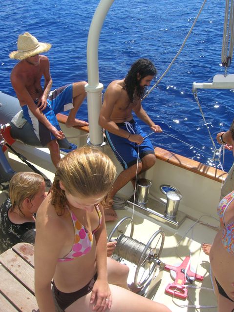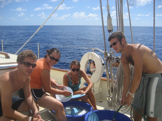 Today was a pretty hot day. Things are starting to heat up a bit as we enter the tropics. The highlight of the day started last night. This is when the three to six watch saw a glowing light far off in the distance. When the sun came up and we got closer, we realized it was an oil rig. How cool- an oil rig being towed by two boats across the Atlantic. The fun did not stop there. We also had a great swim and some super cool fun in the science labs. It turned out to be a pretty eventful day for being in the middle of an ocean.