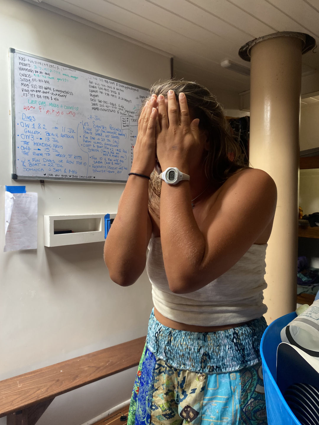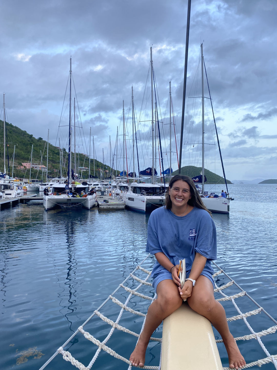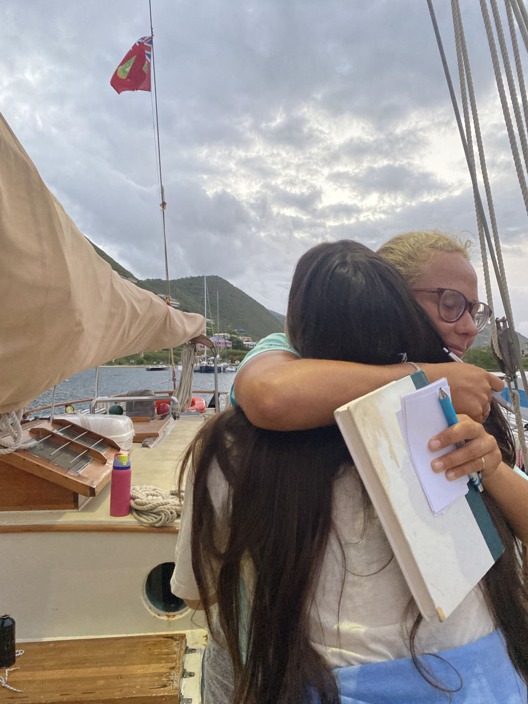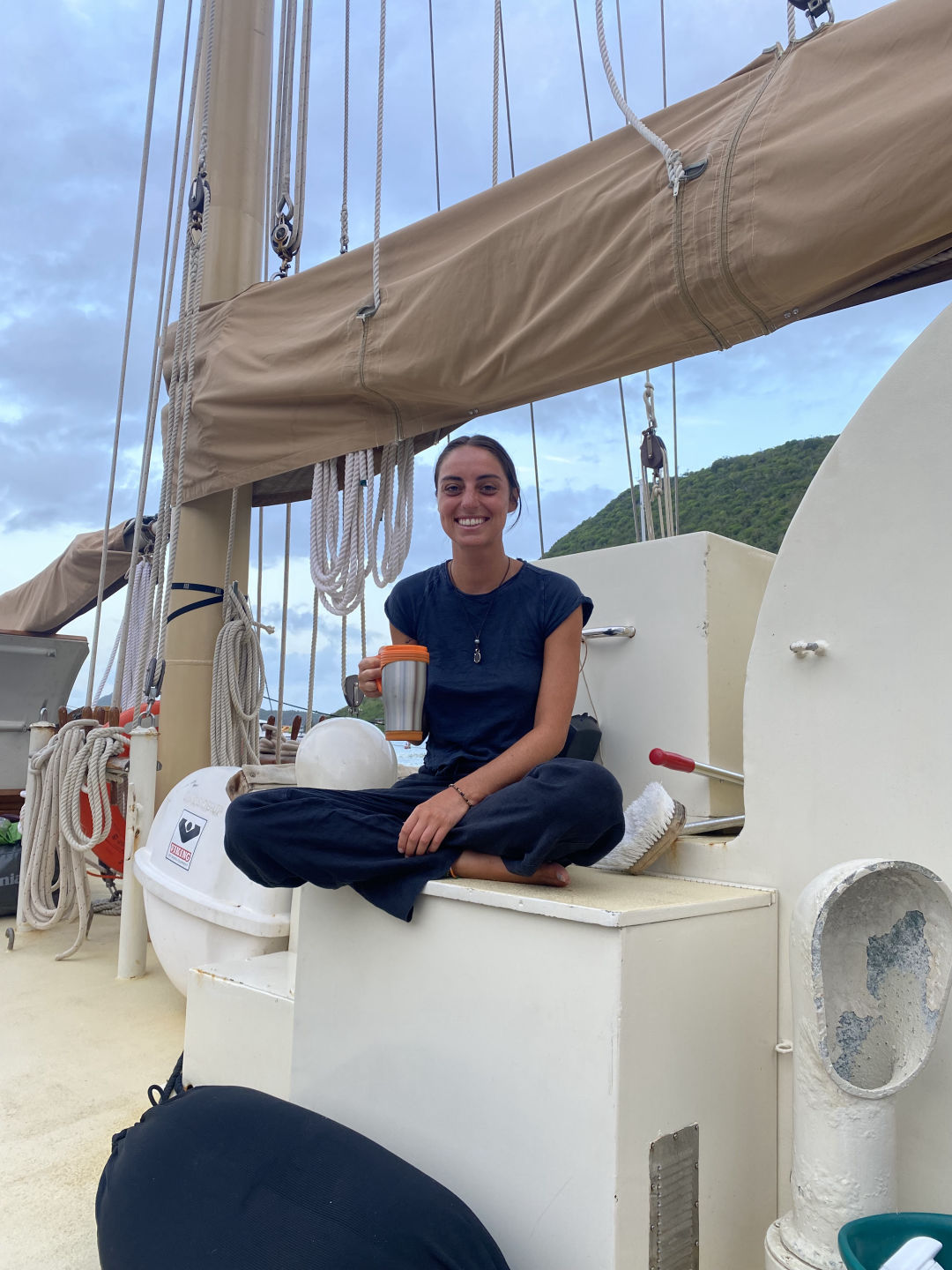 We have shared the most extraordinary moments together – dropping an entire tub of yogurt through the goph hole and it exploding everywhere…(sorry, Maris and Elodie), Ari carrying a bowl of lettuce through the craziness of the squall while we hoisted sails and it blowing all over the place, literally scaling a waterfall in Dominica, singing meows in the salty pit, dancing as a deckie (p.s, a sponge makes an AMAZING prop), Mo Mo’s squall “senses”, dancing with locals in St. Barths, and of course, what I’ll miss the most: AJ’s and my boat checks 🙁 By the way, we did the FASTEST boat check-in HISTORY!!!!! TWO MINUTES AND FOURTEEN SECONDS! Dream. Team. AJ, when I come to Florida, we are doing another boat check. Somewhere. Somehow.