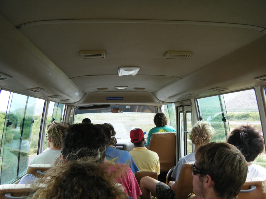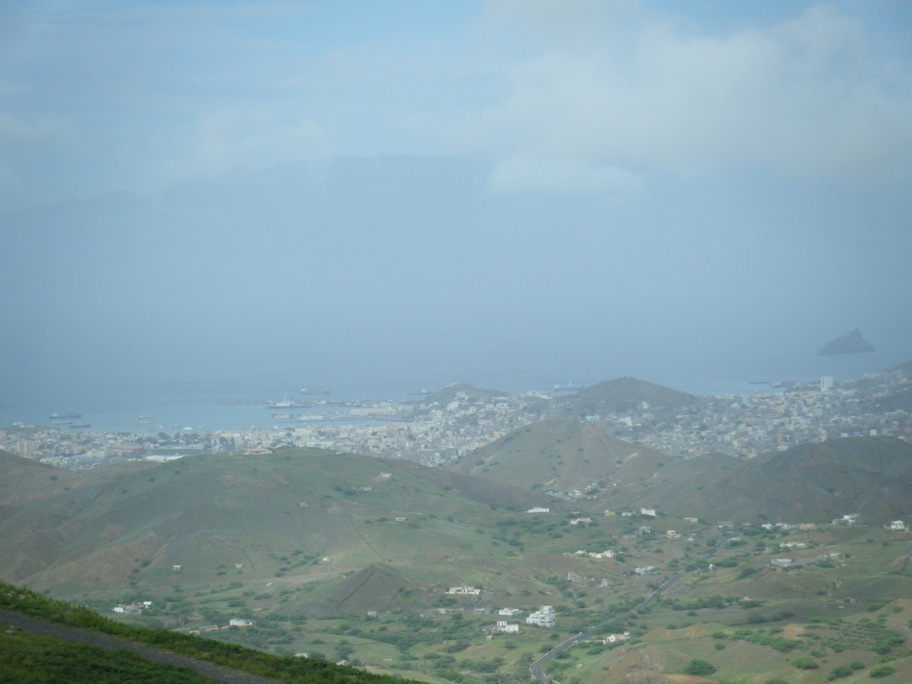 Today, we awoke to homemade biscuits and light rain. After our incredible breakfast, we dinghied ashore and climbed into our tour van. It was a green and white van that looked like it was straight out of 1979. We drove through Mindelo and out to the countryside of Sao Vicente, Cape Verde Islands. The first place we went was Sao Pedro, a small town to the south of Mindelo. We walked the sandy beach before we climbed back into the van to drive to the top of the island. We drove up the rickety, cobble-stoned road, passing locals with donkeys along the way. Near the top, we piled out to walk up a way in order to get a better view. The fog started to roll in, so we rolled out. We drove down the mountain and out to another beach. We walked out to the end of the cement pier and took a well-deserved swim off the pier. We splashed about in the water for a while, playing Marco Polo and looking at nearby tide pools. After we left the beach, we visited a few more towns before we came back to Mindelo. Cape Verde is gorgeous, with green hills and colorful cement houses lining the beaches. We had a little shore time before heading back to Argo and a delicious dinner followed by an exciting Oceanography class.