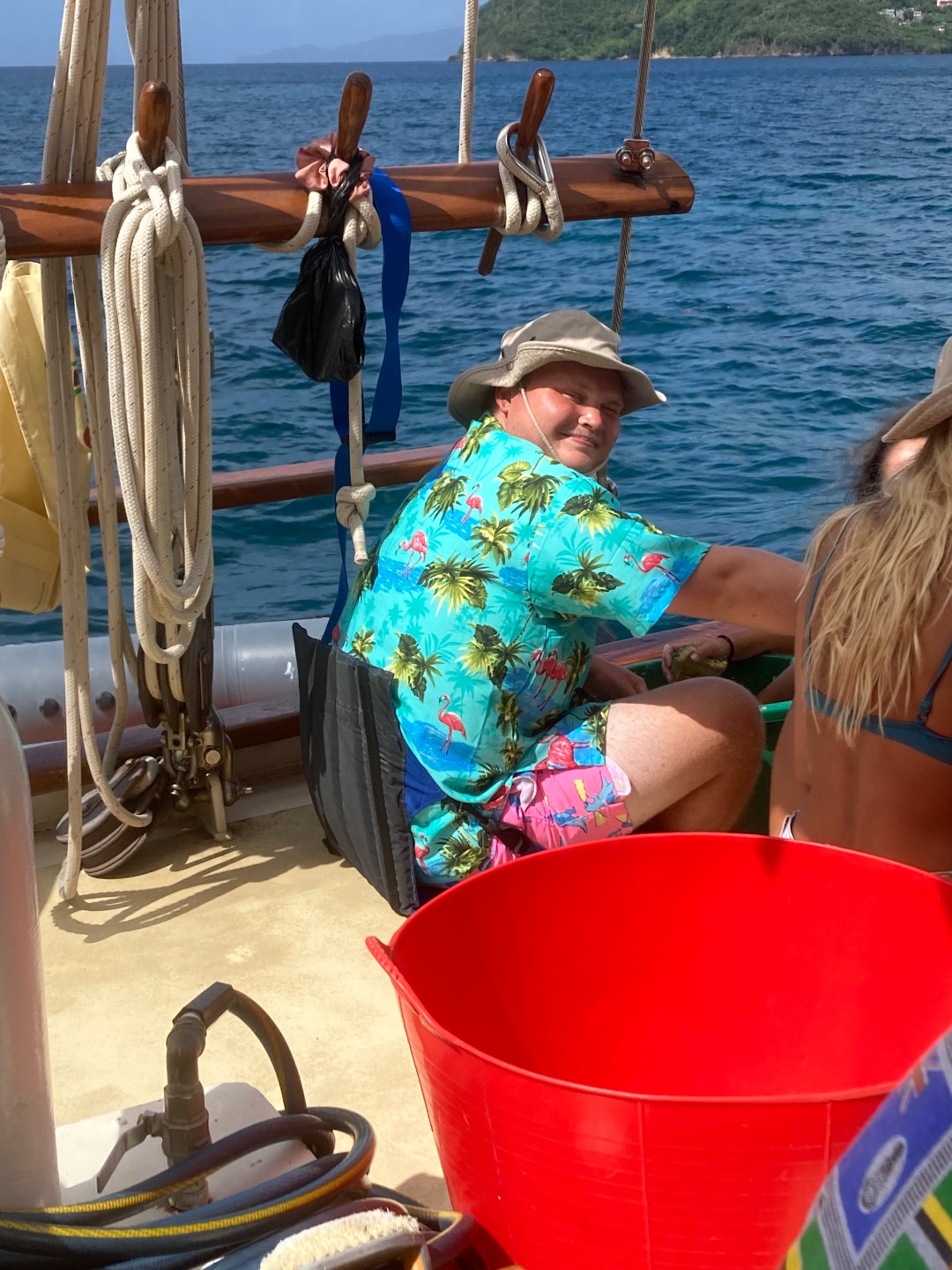To continue the mood, this morning’s alarm featured ‘Working for the Weekend’ (not really us with our later start 😉) and music by The Beach Boys (duh). Teddy (best known as Fred on this vessel) and her hard-working sous chefs made granola and milk, and fruit. Absolutely delicious! Although this morning’s menu was supposed to include banana bread, our late night last night paired with the heavy snoozers of this morning didn’t quite put that on the front burner. Fear not, though, we were spoiled with banana bread dessert after chicken caesar wraps for lunch. We were a little concerned that there wouldn’t be enough banana bread for everyone…but I think we’ll be okay (see photo 12).