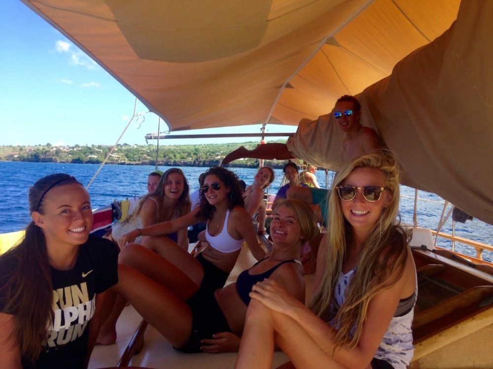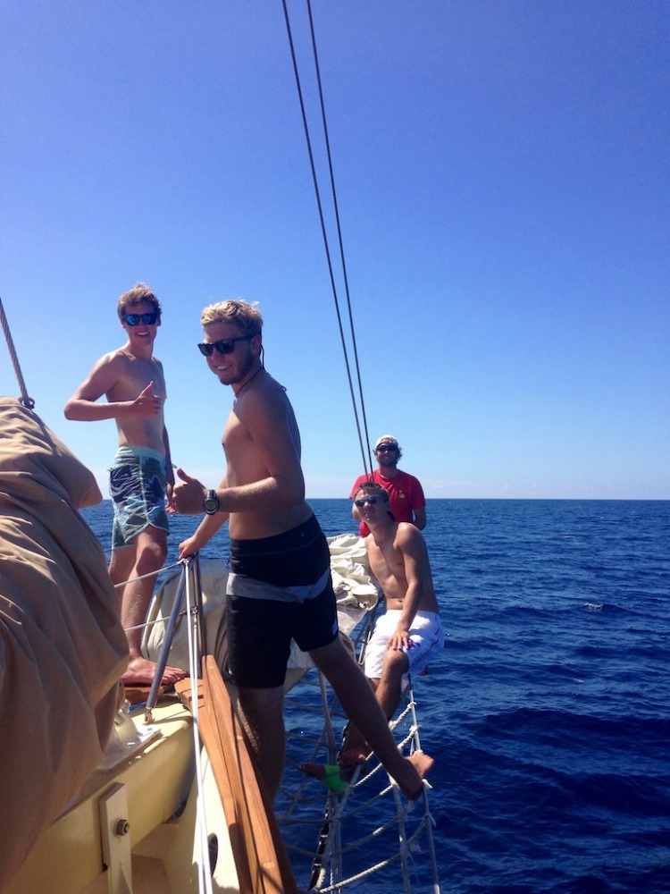 After finally making it back home, we all showered together, as we do every day, routinely. This is usually my favorite part of the day. Everyone unwinds from the day, jumping off the side of the ship and practicing flips and tricks. I still can’t flip without backflopping… it’s getting there. Then we set up for dinner; we had chicken cordon bleu. Food has been delicious since day 1, minus the curry, but that’s okay 😉 We did the squeeze… everyone sat around the dinner table holding hands. We went around sharing our favorite parts of the day and then our worst fears, which varied from a deathly fear of ketchup to a fear of people in cow costumes. It’s been almost two weeks aboard Ocean Star. It’s different but in the best way possible. Not gonna lie. It definitely took some time to adjust and find all the simple pleasures in boat life. Life feels pure, natural, and real. The days seem to fade together, and time slips by as quickly as sand slipping through your fingers. You have to be completely in the moment and soak every little detail up because even though it’s still just the start of this adventure, I know it’s going to fly by and will be over before I know it 🙁 … The end. 🙂