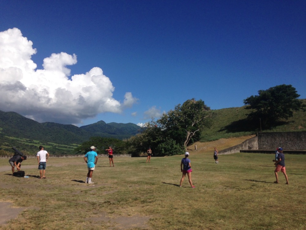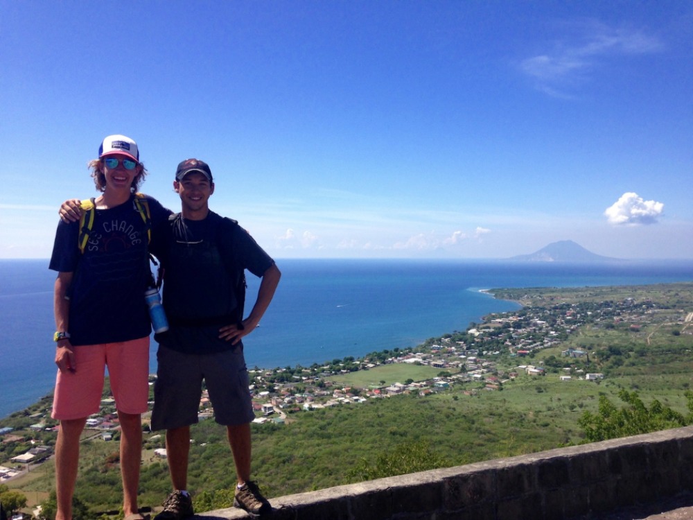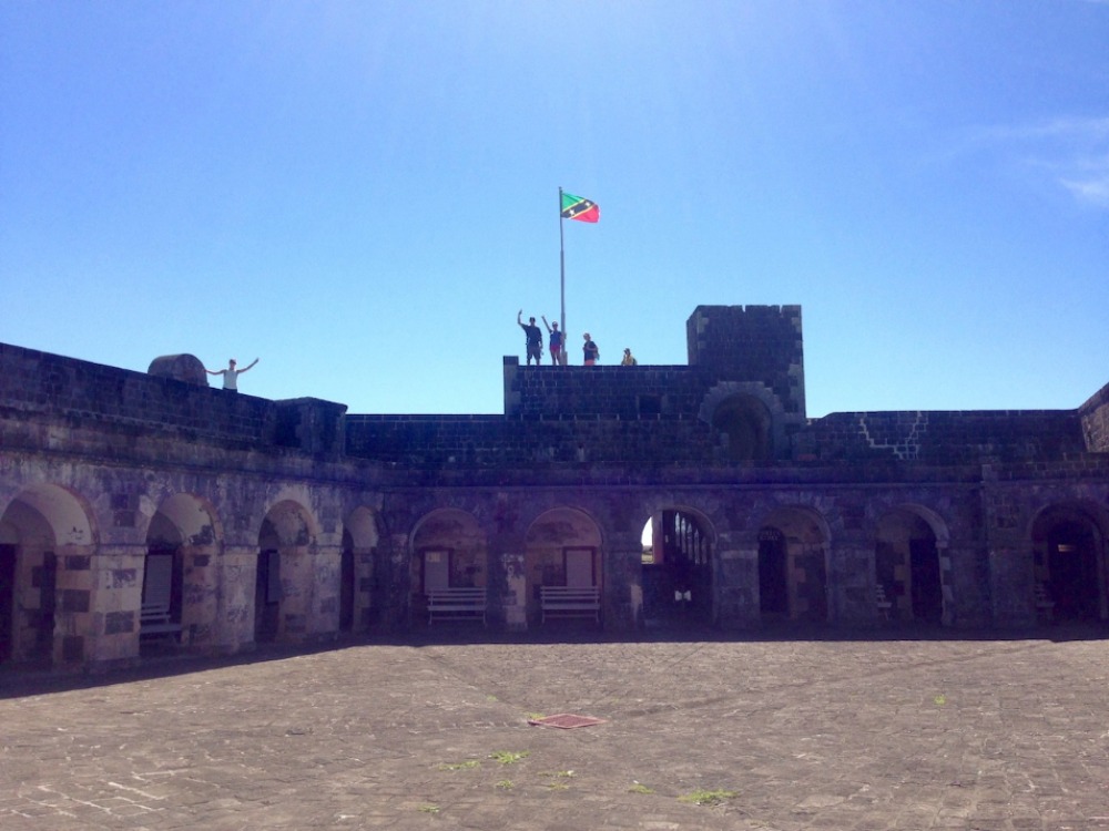 After an early start to the day with my sunrise-shift anchor watch, I woke the crew up with some tunes, took a dip in the ocean, brewed myself and some of the other girls a pot of tea, and just chilled out waiting for everyone to get up and start our morning duties. We had eggs and sandwiches for breakfast. After briefing the crew with the day’s plans, everyone got to work finishing up our BA (Boat Appreciation) that we complete each time we arrive in a new country: scrubbing the decks, coiling lines, and just straightening the ship up. Everyone helps each other out, and we all work together to solve and fix problems as they arise. We make the work fun, blasting tunes and joking around while we labor. After all the boat chores were finished, we all cozied up down below deck in the saloon for our oceanography class, learning about the geology of the earth and ocean. Next, we geared up for an incredible hike on the island of St. Kitts, climbing to the top of Brimstone Hill. Taking turns, Tor and Nick chauffeured us over to the island on the dinghies Irv and Exy. It was a hot and sweaty 40-minute hike under the Caribbean sun. If you forget to put a nice layer of sunscreen on, you will fry, no matter how tan you are. We are constantly giving each other reminders about sunscreen and remembering hats. After taking advantage of the air-conditioned gift shop on the top of the hill and having a little packed lunch, we continued to explore Fort Brimstone, the large fort at the top of the hill that was built by the British in the 1700s. The view was breathtaking from the top of the island, and everyone got some sweet shots. The crew relaxed and tossed a football around for a bit before we headed back down the hill at the end of the day.