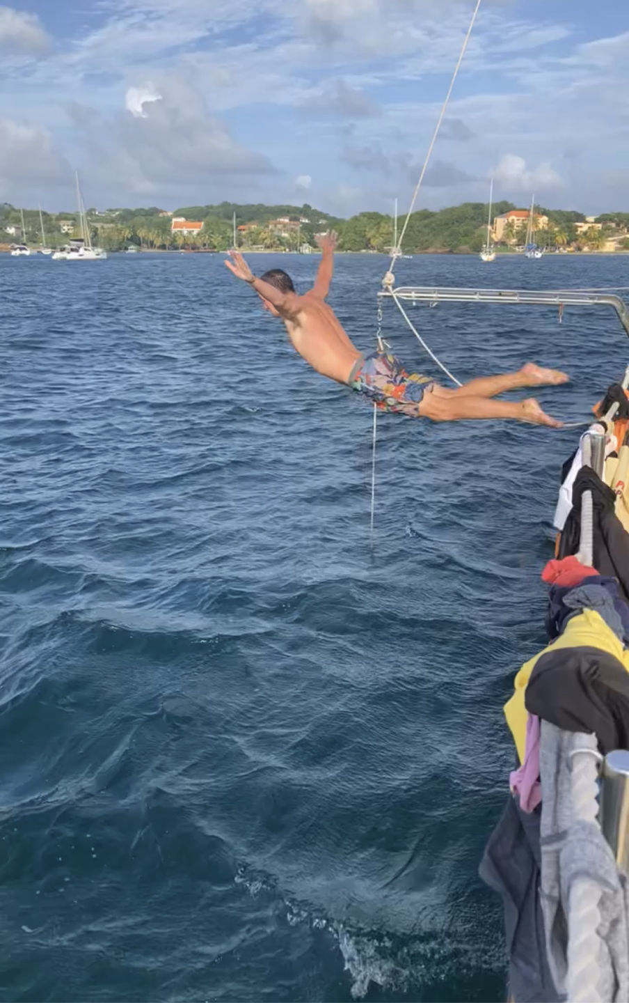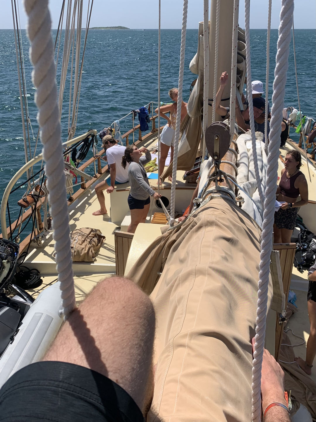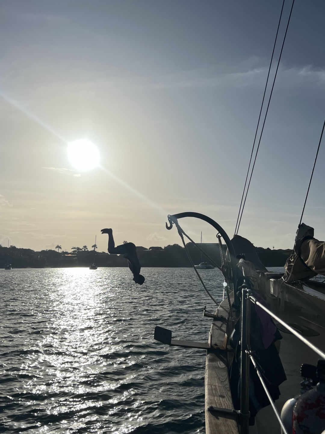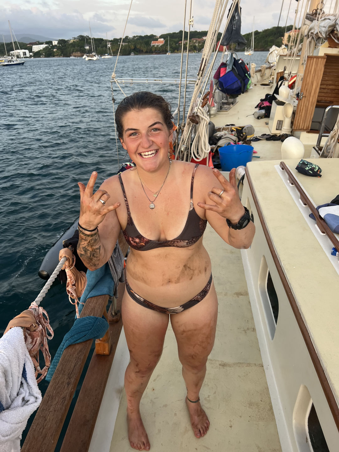 After our two previously packed days full of experiencing the wonders of Grenada, we were all quite pooped… Once our tummies were filled with a scrumptious breakfast, we jumped into the day. We started off with Marine Bio class–taught by our one and only Steph–where we began to learn more in-depth about ecosystems and the relationships that form the food web, recognizing that all organisms within are connected in some way or another. We then enjoyed some delicious lunch followed by an efficient clean-up as Steph, Heather, Drew, and Nick worked on retrieving our lost anchor–spoiler alert: the mission was a success, wahoo! After lunch clean-up was finished, the crew began preparing for our passage as we plan to head out bright and early tomorrow morning! We then had some time to study for our first quiz in Oceanography, followed by class time with our very own lovely Heather as we dove deep into the logistics of water and its’ super intriguing properties;) Since we were quite drained, we spent the rest of the day catching up on work, sleep, jumping in the ocean, and enjoying the delightful company of our friendly sun as it shined bright for us after a drenching past couple of days; soaking up our drained energy and leaving us warm and replenished. We ended the day with boosted morale and a delightful and fulfilling dinner of pesto pasta and garlic bread (YUM;P). Sending all our love to everyone out there. Out! (PS– catch some pwetty fall leaves for me and a good luck boost!–squeaks)