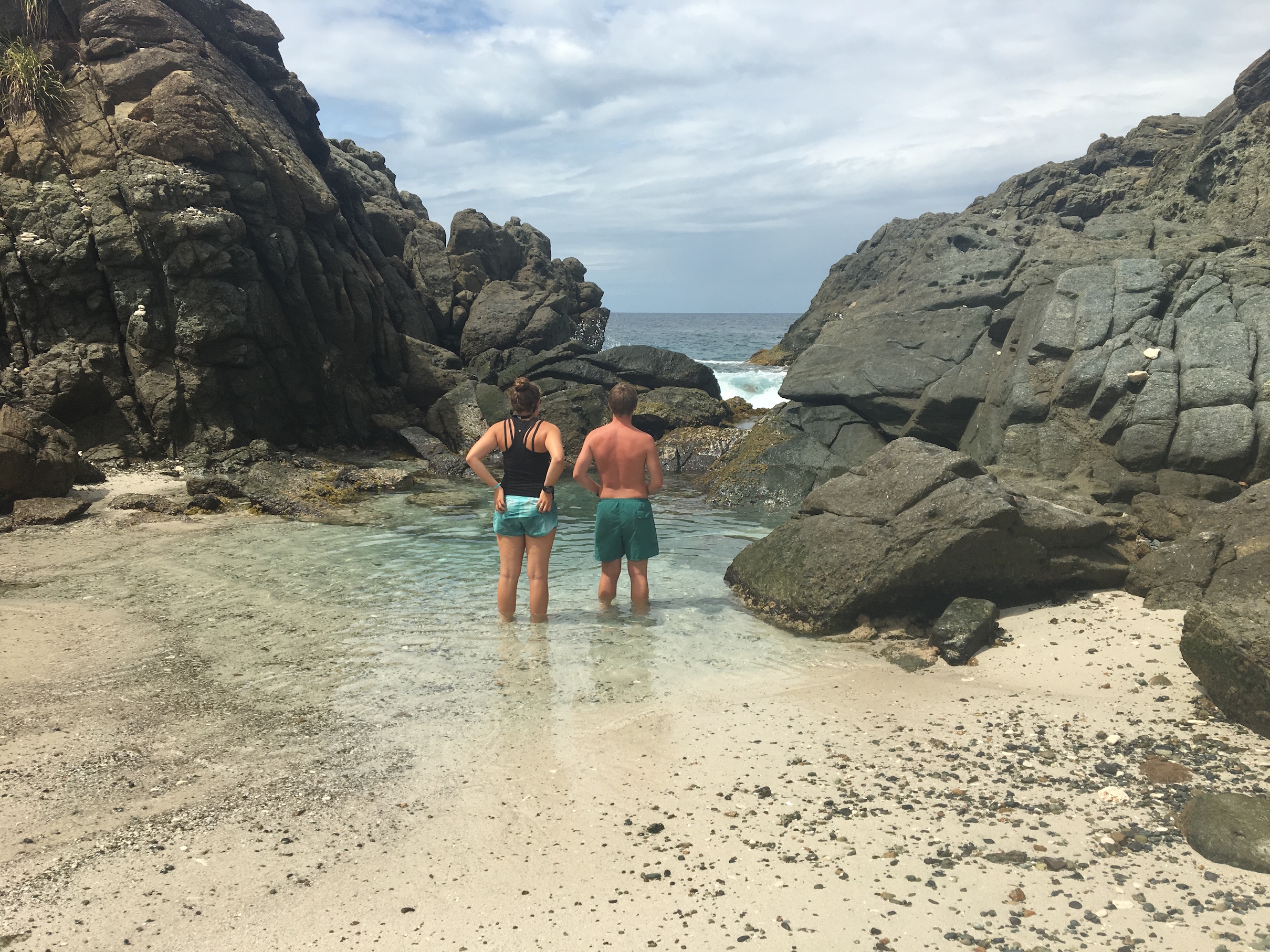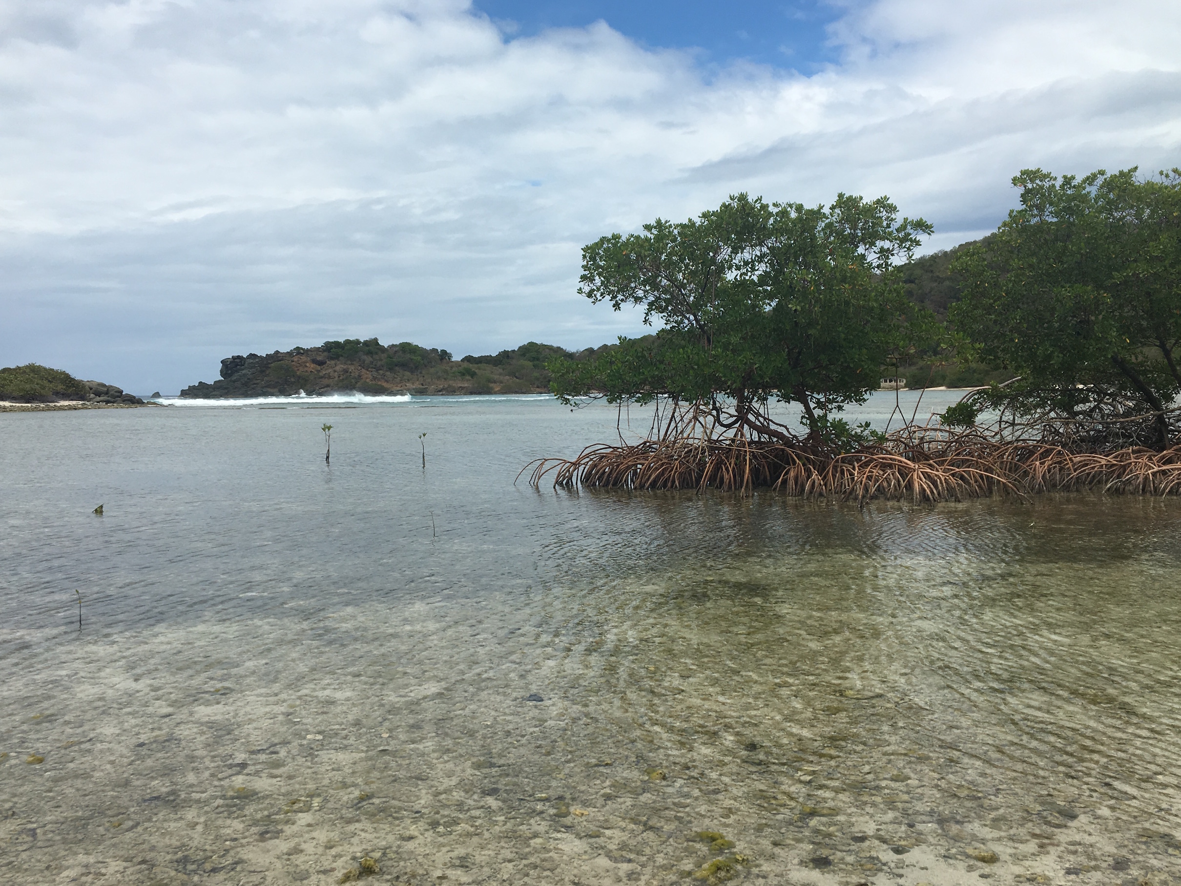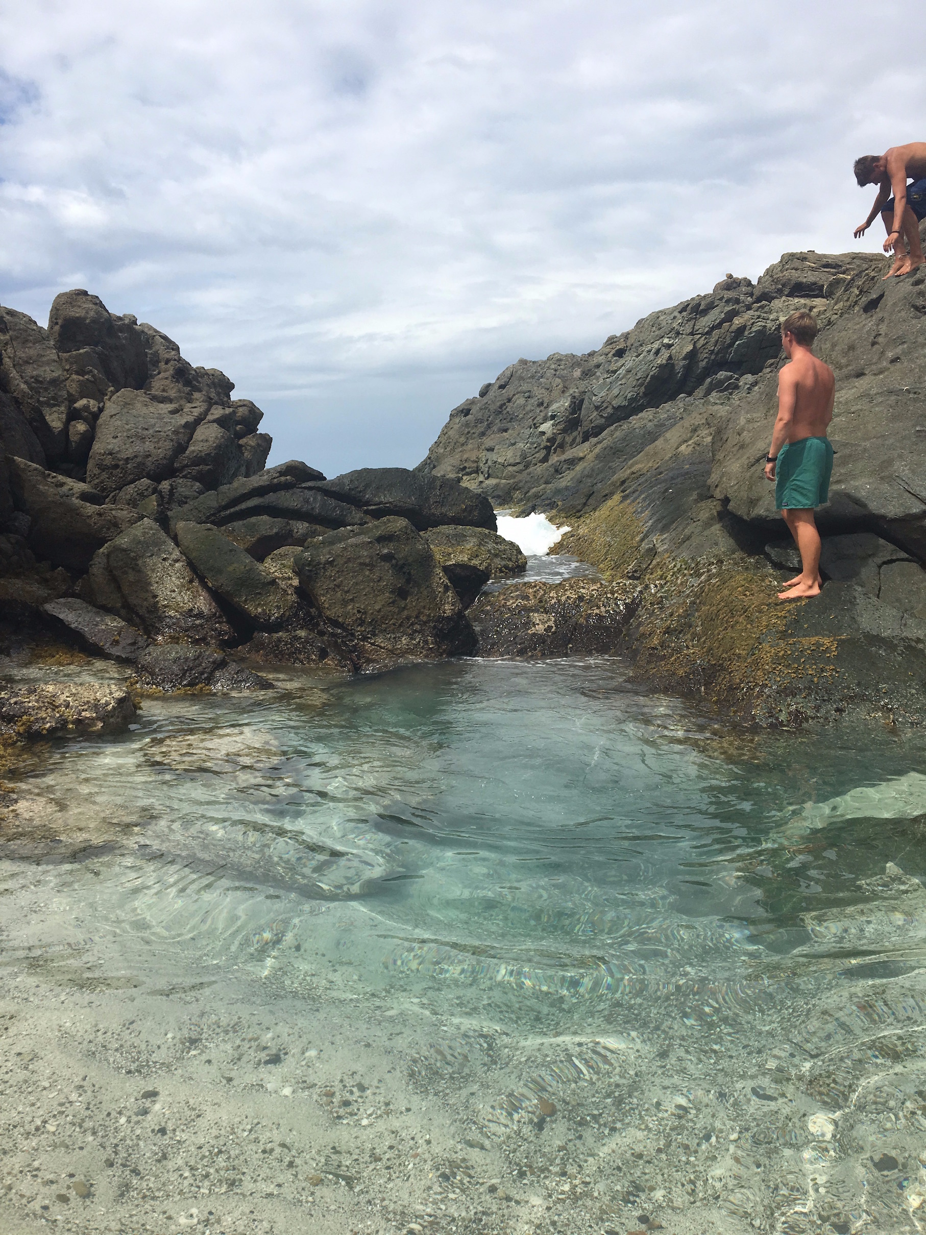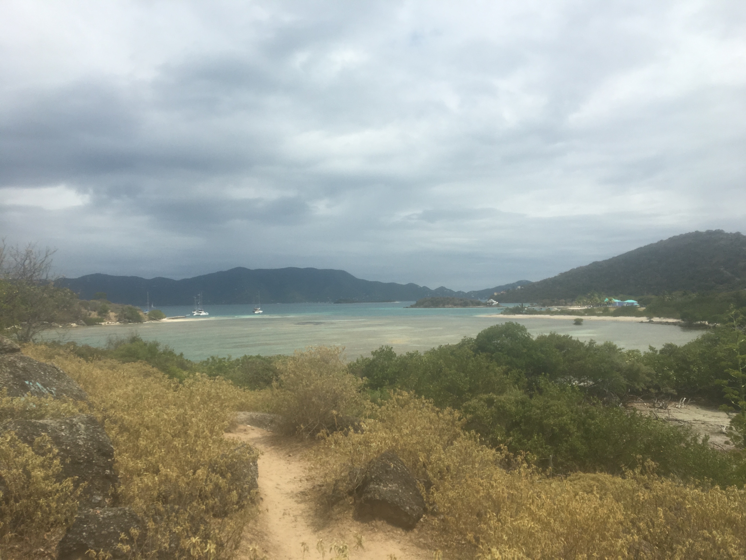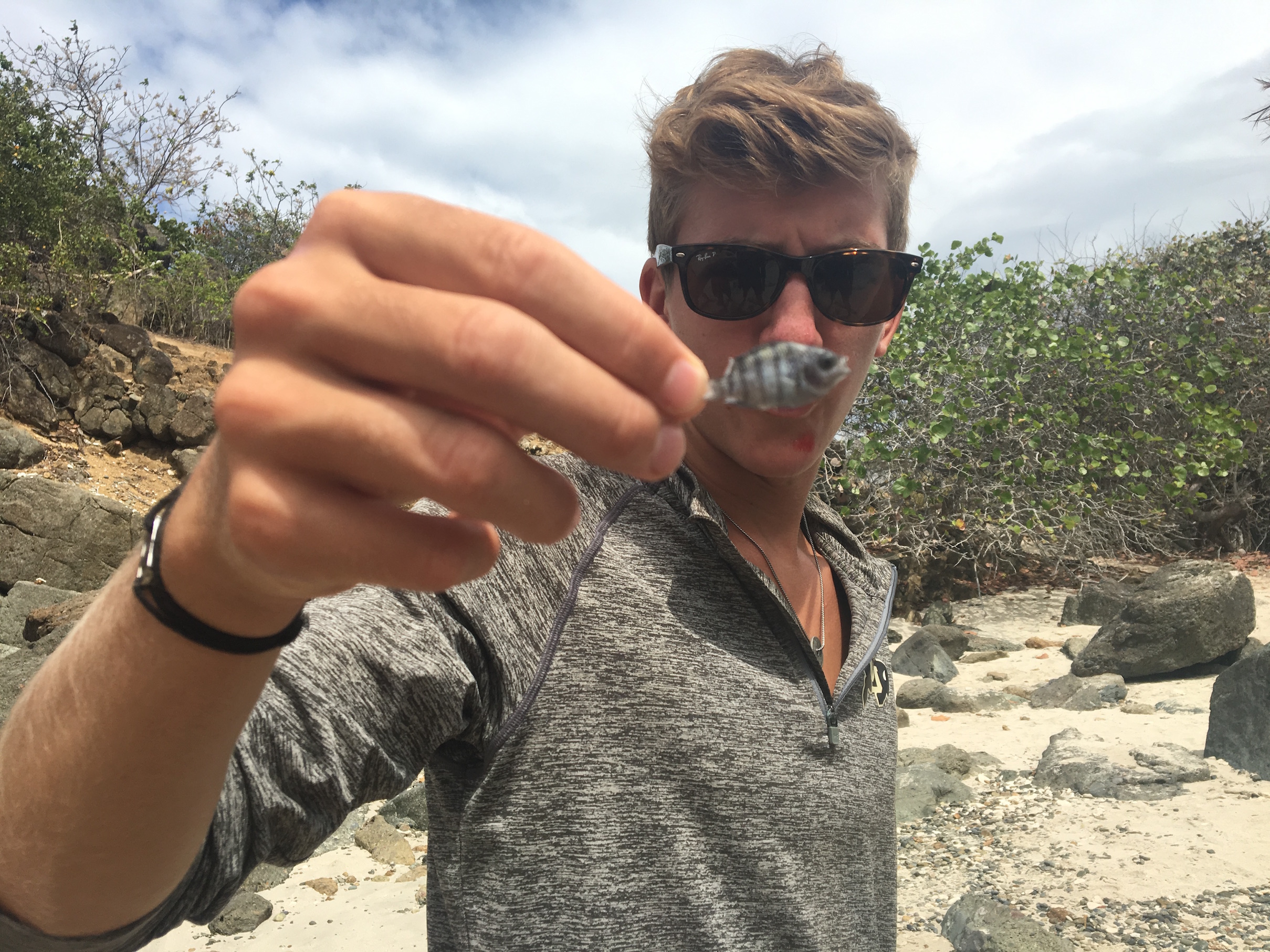 It still doesn’t feel real that this trip is coming to a close. In the recent few days, there have been many new and exciting experiences, but little things like posting cleaning checklists and confirming flights bring us back to the reality that our time here is dwindling. Therefore, we are making the most of every minute. Today started off at 7 am with breakfast bagel sandwiches. Though the weather today looked dreary, some of the crew went to Sandy Spit beach, where we played Frisbee, built sandcastles, and dove into the waves (some more successfully than others). Lunch was onshore at Foxy’s Taboo, a cute beach vibe restaurant and gift shop that stood feet from the water. It stands alone on a mostly deserted stretch of coast, within walking distance of a spot known as the bubbly pools. These pools were granted the bubbly mantle because of the waves that squeeze between rocks into a shallow salt pond, creating the illusion of hot tub jets in the fizzing water. Some jumped in; others were pushed, but we all had a great time. After cooling off, the crew hiked back to the dock, where the dinghy began shuttling crewmembers back to Ocean Star. Once aboard, we picked up anchor and motored the short distance to West End. We dropped our hook at the back of the anchorage just beyond sight of the final docking spot. We are prepared to get up early and move to that final berth just a few hundred feet further into Soper’s Hole. Dinner was sausage and mashed potatoes with vegetables, and the squeeze question fit the growing nostalgic and reflective mood: “What will you miss about this crew, and what will you miss about this experience?” After dinner, we watched a video that Ian put together, all the photos and videos of our time here. It was nostalgic, hilarious, and fun all at once; these past 78 days have been a wonderful time, and reliving those moments through the footage was uplifting. We ate a tasty brownie dessert to celebrate a great semester so far, and now we are in for a long night of packing and writing before our final full day tomorrow.
