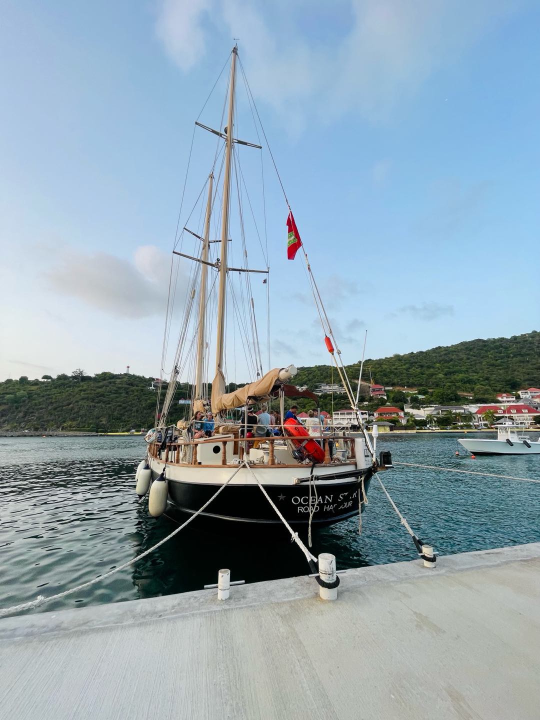 Today was definitely an early start on Ocean Star. I kicked off the day at 4:00 AM for my anchor watch shift with Hana, and shortly after, the rest of the crew got moving at 5:00 AM to prepare the ship for our passage to St. Barts. There was a lot of work to be done, including hoisting sails, securing dinghies, packing scuba gear up, and more. The wind was far stronger today than expected, so a 5-6-hour passage from Saba to St. Barts turned into an 11-hour passage. The crew split passage watch up in to 2 hour shifts throughout the day, and as a member of watch team 1 I looked over the boat with Lucia, Nick, Eric, skye, Ben and Meg. The time goes by quick with a fun crew, and once each team finished watch they got to rest for 4 hours until starting up again. Shoutout to Tevon for having such a good attitude despite his seasickness!