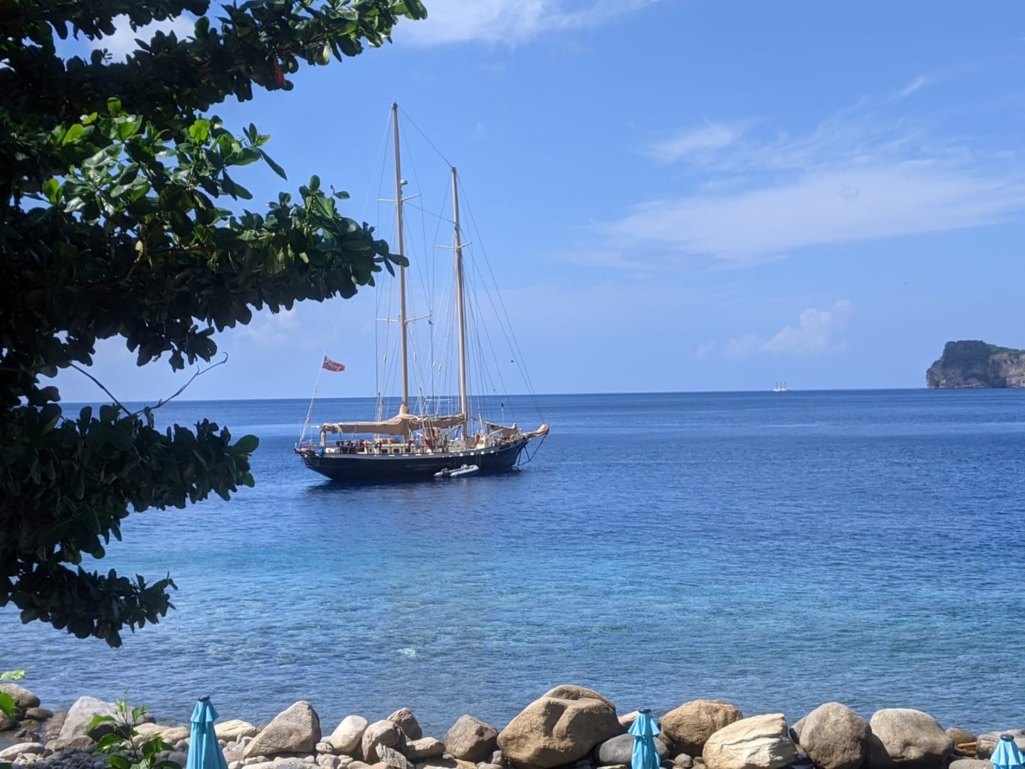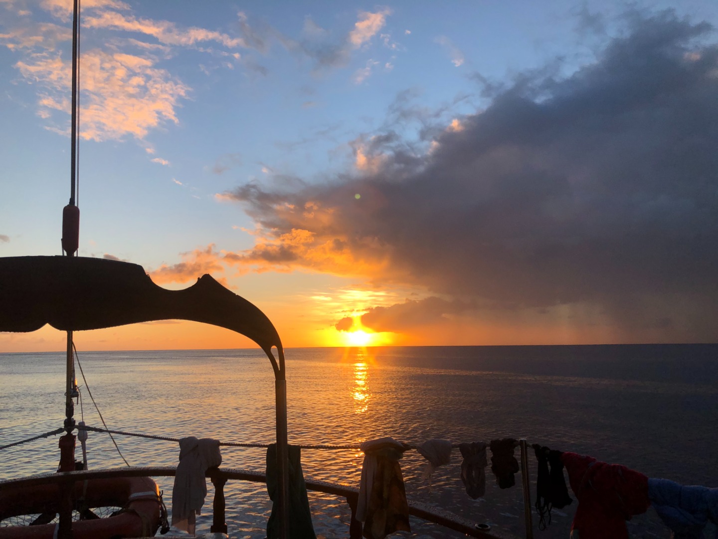 A beautiful day sailing from the Pitons to Rodney Bay with the planning for the trip up to Dominica already well underway. Spirits are high on board SY Ocean Star as the program matures nicely. Freediving with head dive instructor Ash this morning was a smash hit with those that took part (at 6 am sharp). Today’s cooks managed to produce three delicious and filling meals, despite the fact that we spent much of the day beating upwind at quite a rate of knots. Everyone is looking forward to starting their Padi Rescue diver course when we get to Dominica (myself included), as all crew members are either advanced or open water certified except the dive instructors themselves. The scenery here is breathtaking. I’ve never seen so many rainbows, and I’m from Cornwall in the UK, where rainbows are really quite common. Then there are the sunsets, the sea, and all set to the backdrop of the beautiful green hills and mountains of St Lucia. I think everyone on board is excited to see somewhere new but will be sorry to leave such a spellbinding place.