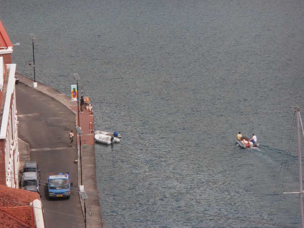Scuba gear was pulled out of the compartment it hid in during passage, and Irv lifted up from the water. Every student reads and completes the deep dive section review, barring the one already certified in advanced diving. This was the scene in the morning as we prepared to depart the Yacht Club and move to Dragon Bay, right after Marine Biology (OCB). The only remaining component was fixing the fridge. The folks back home aren’t aware of the situation, but the fridge needed a quick repair to get the temperature back to an appropriate range without using the engine. The mechanic came during our review session for class and was still there when the class was finished. So plans changed, and we all proved how flexible we are! It works out for the better as the fridge gets repaired, and we will get our deep diving training tomorrow so we can do a wicked dive in about a week! So it was another day with free time for us! A bunch of us went to this local cafe, which has an amazing roti and even better smoothies. (I swear that I could drink those smoothies all day and not be sick of them). My group fractured off and went to explore Fort George, which is the resident Police Training Quarters. There was a really good view of the city, and I was able to spot JB and Scott riding into the harbor on Exy. Afterward, we traveled to Grand Anse Beach, which is famous for its white powdery sand and the gentle lapping of the waves. (Others gravitated towards the beach, but the beach was so large that it was hard to find people.) We headed back to the boat before anyone got too sunburned. (At this point, people are beginning to form tans and move past the burning stage) There was a beautiful sunset for dinner! Now, it is off to class and then to the bar to watch the recaps of the Winter Olympics! Tune in next time at the Ocean Star Blog!
