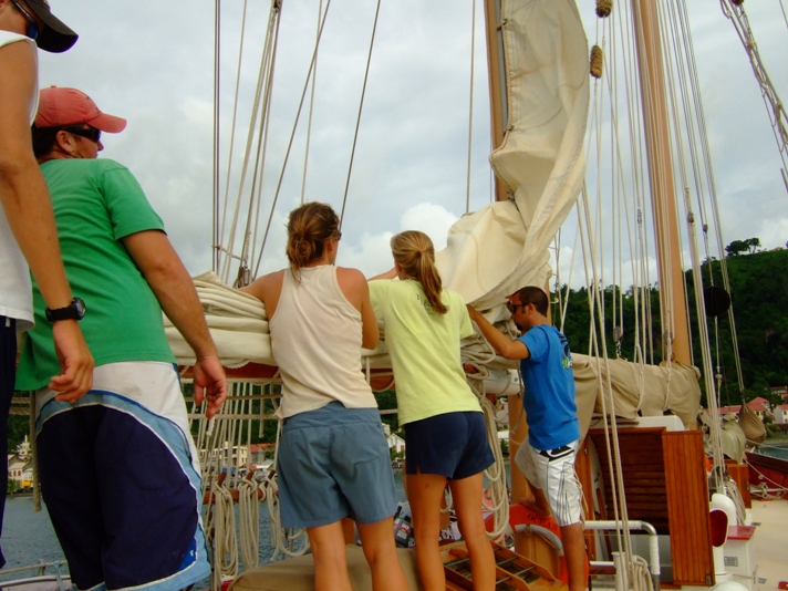 We woke up this morning around 6 am to raise the anchor and make our way to Fort-de-France. While on our passage, Joe and Stephen made us tasty pancakes. After breakfast, we went ashore at Fort-de-France, even though it was fairly early and on a Sunday. Most shops and cafes were closed, so some of us went to McDonald’s and tried to order in French, which, for some of us, was a joke. After lunch, we went back to the boat for a sailing class, and we made our way to St. Pierre.