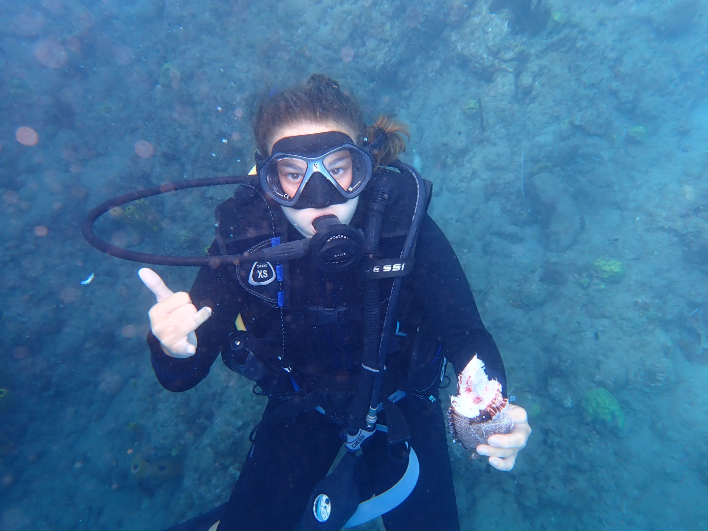 Day 48 started off strong with a leadership class, leading into a marine biology class where Heather taught us all about coral reefs. And then, straight after lunch, we all got onto a dive boat and drove south to experience said coral reefs. On the first dive, we were lucky enough to see two scorpion fish, a big drum fish, some shrimp, and the beautiful reef itself with all its marine life. Our guide also brought a pole spear and speared two of the invasive red lionfish. The second dive was on a champagne reef, named after the air bubbles rising from the ground, indicating a hydrothermal vent. Once again, the guide brought the pole spear, but instead of shooting the fish himself, he showed me how to use it and let me spear my first lionfish. We dove on and saw some cleaning stations, lobsters, crabs, and some more scorpion fish. Back on Ocean Star, I took it upon myself to clean the four lionfish we kept and, with the addition of lemon juice and onion, created a ceviche for everyone to enjoy, along with Ben’s jerk tofu burritos.