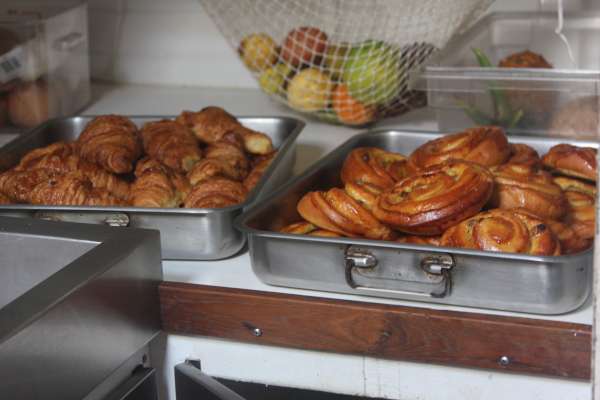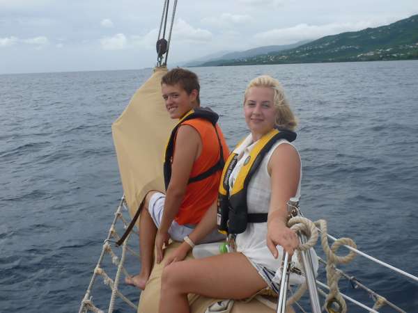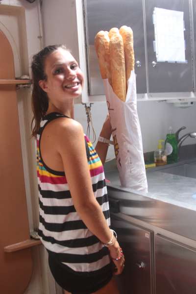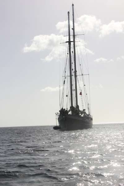 There are not many better ways to wake up than to have a fresh, French bakery breakfast on display when you come up on the deck to greet the day. Needless to say, everyone was delighted to have an assortment of fresh pastries, baguettes, croissants, and fine cheeses and jellies to choose from as we all cleared our eyes and chatted about today’s plans. After a good meal and clean-up, we loaded up in the dinghies and headed back into Les Saintes for some last-minute shopping, strolling, and internet. Coffee, ice cream, cookies, and sarongs were the most popular finds. Everyone gathered on the dock and headed back to Ocean Star for baguette sandwiches for lunch. After lunch, we raised anchor and headed over to the neighboring big-brother French island of Guadeloupe, where we will be enjoying a new dive site. Some swimming, showers, and chicken Caesar salad put the cap on another great day in paradise. Tomorrow, we’ll be exploring some new terrain above and below the water.