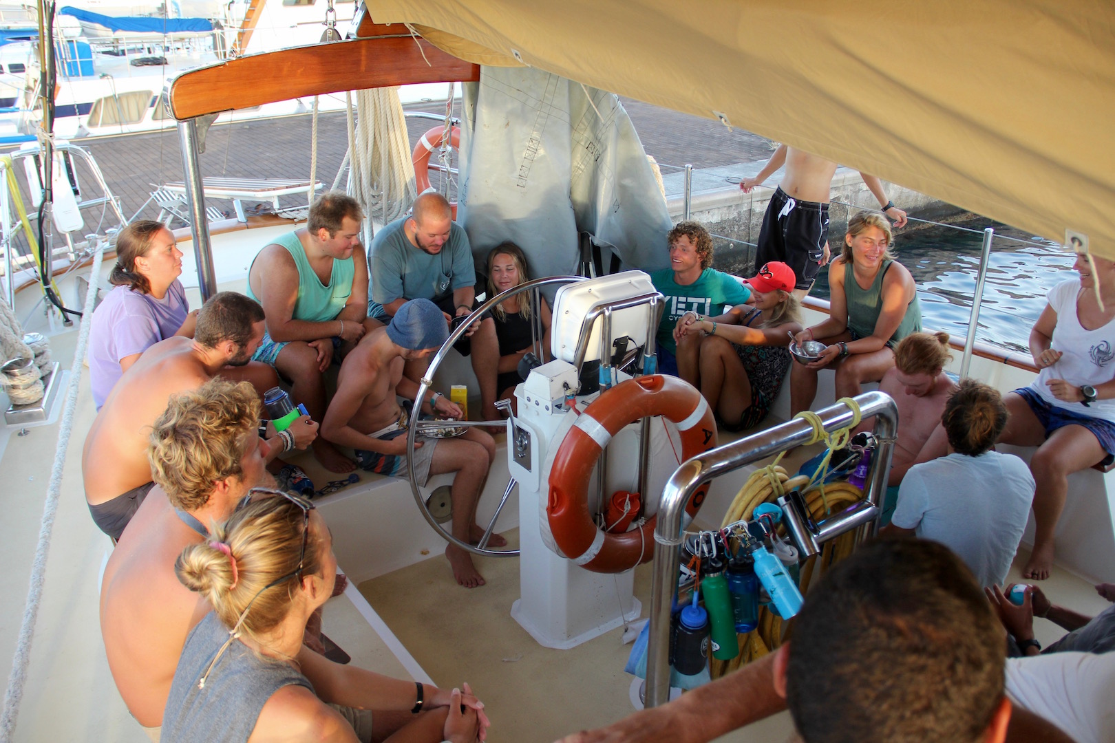 After dinner, we all met in the saloon to watch a great slideshow put together by Lindsay, allowing us to relive the past 88 days… it was pretty funny to see some of the photos from the beginning and the changes in various hairstyles and skin color, and absolutely amazing to think about everything we have done over the past three months. For starters, we sailed 6,700 nm and crossed a pretty good chunk of the Pacific Ocean. Members of our crew have accumulated several levels of PADI diving certifications or passed their Yachtmaster theory, in addition to the completion of the regular academic classes onboard. Shipmates who had never spent a night on a boat or sailed before are now competent sailors. 18-year-olds who have never had to cook their own food have planned menus and cooked absolutely delicious dinners for a crew of 25. Tonight at the squeeze, I asked what was something about you that has changed over the course of this trip, and some of the answers made me so happy and proud. Many of the people on board said that their work ethic has improved, that this experience has given them perspective or a new drive to work towards their goals, or that it has given them new goals. Knowing that this trip has had such an influence on someone’s life is the absolute best thing about this job, and I get a major proud mom feeling hearing how they have grown.