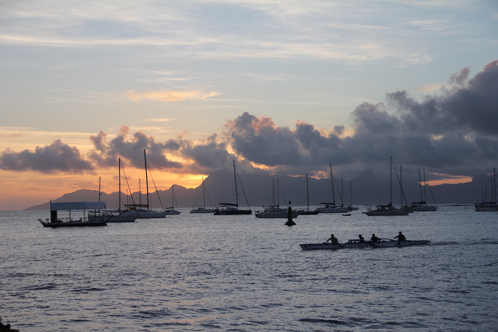 Today I woke up around 6:30 to various voices and boat noises that indicated to me that we had reached the channel outside of Papeete, Tahiti. Always curious to get the first glimpse of a new spot, I popped my head up the companionway. A beautifully breaking wave was off starboard past the reef protecting the channel, and land stood off to port. It was strange to see traffic as people headed to work – still nothing in comparison to what people are used to in the US, but it was still the largest city and most cars we have seen since we departed Panama City a month and a half ago. By 7:30, we woke the rest of the crew to prepare to come onto the dock just south of the city. After almost three months of working together, we have become an incredibly efficient crew, and we quickly got docked, sail covers on and the tarp up, and got ourselves sorted. We then had the morning free to go explore the town or just hang around the marina or go grab lunch. We met back up at 1 pm to tackle a round of BA (boat appreciation) and split up into teams to get some of the messy jobs done to make our lives easier tomorrow when we go to pack and do the last round of cleaning. Xander and Grant took on cleaning the saloon bilges with Ben while Audrey and Jack did a detailed clean of our dinghies Nopadone and Smoke. Henry got in the freezer to give it a good once over while Soofer and Nova took on everyone’s favorite job, cleaning the gray water tanks. Everyone put in an awesome effort, and we got a ton accomplished in just over two hours, at which point we took much-deserved showers at the marina.