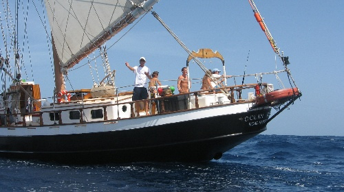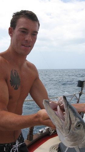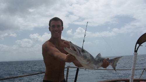 After an early start to Barbuda, we were able to put up the flying jib as well as the fisherman. While everyone was taking pictures of Ocean Star with all her sails up, Simon and Ross spotted a humpback whale breaching out of the water. A little before lunch, we caught a 4-foot barracuda, but we let it go after a few pictures. Tonight, we have a marine bio class.