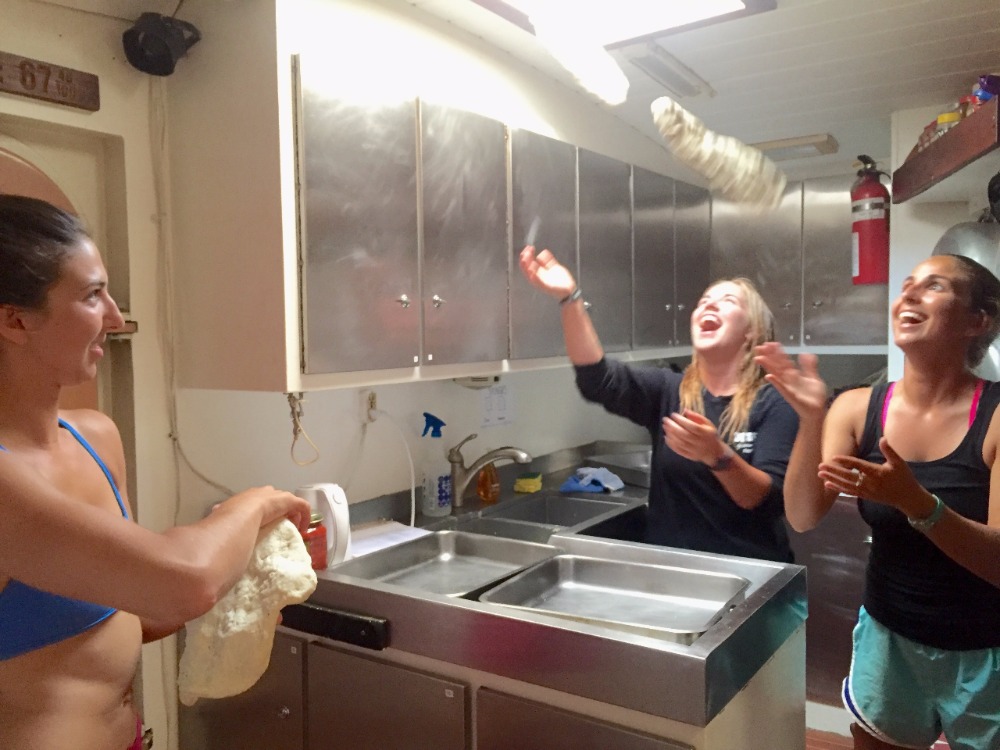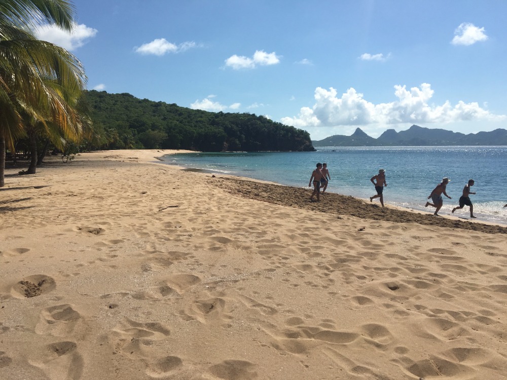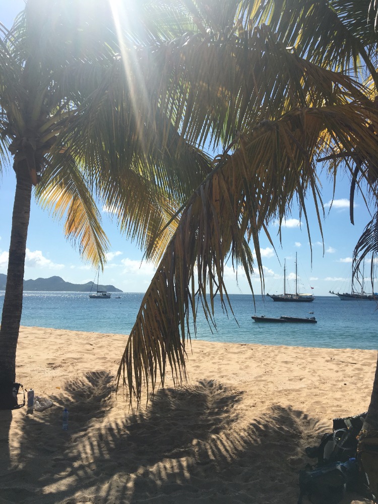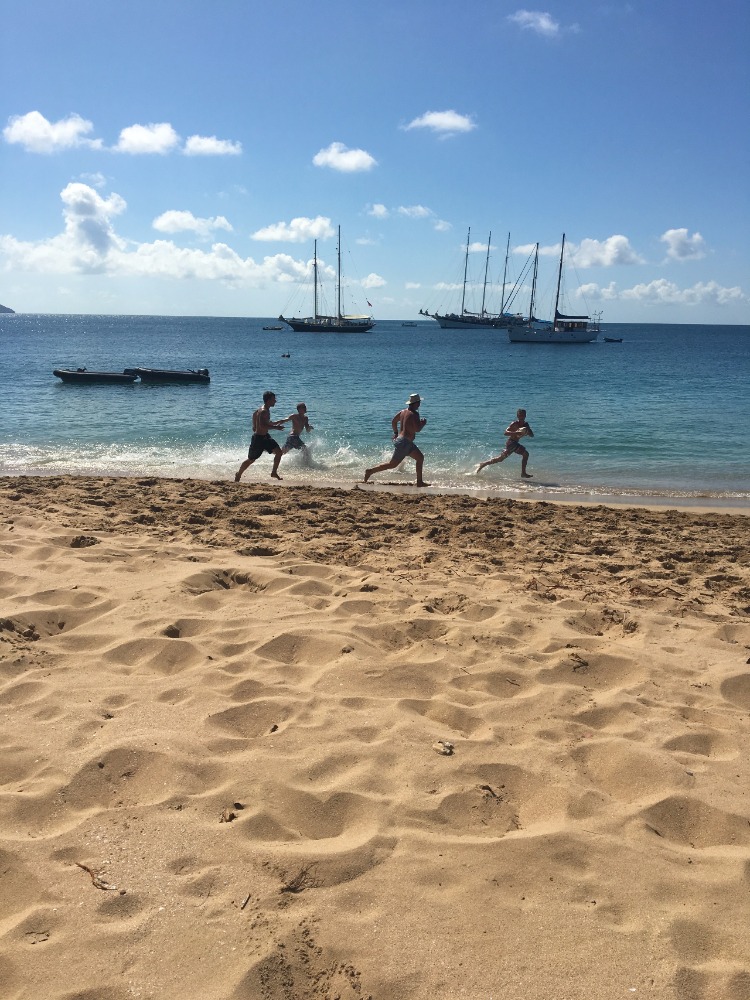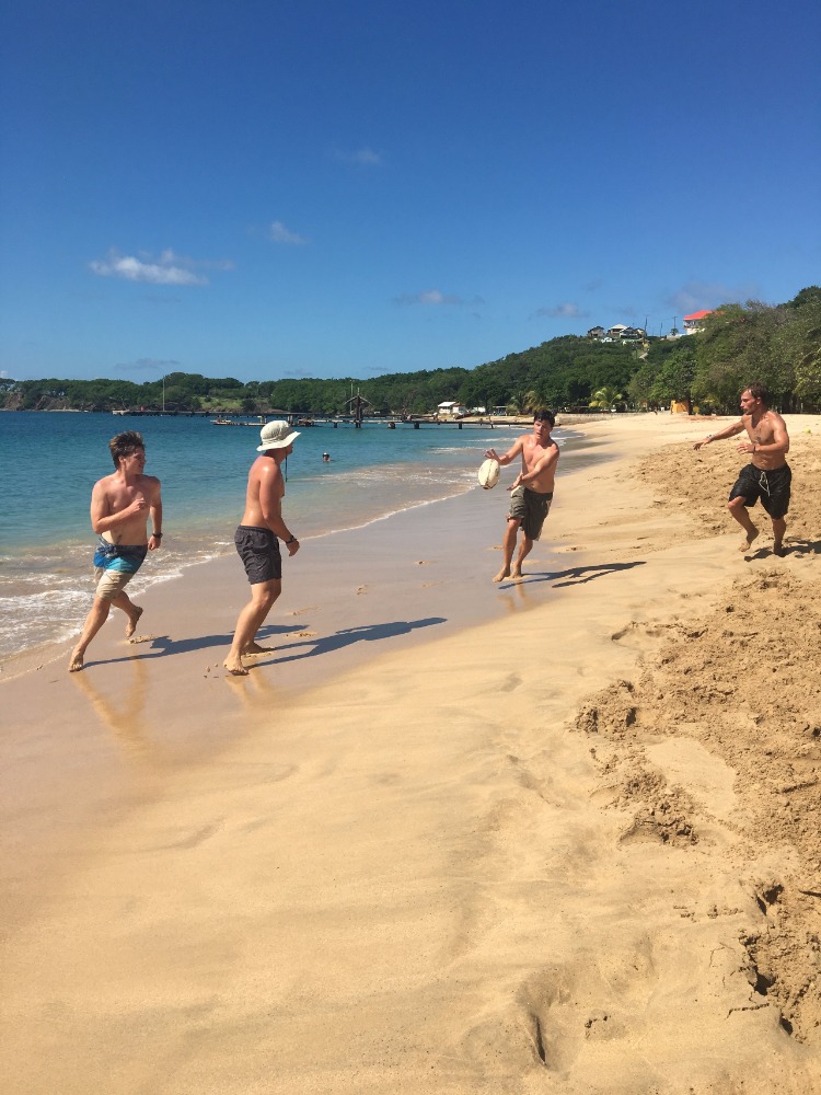 Muffins were a great way to start the morning. Then we had marine biology after breakfast, where we learned about bryozoans and mollusks. Afterward, all the boys took off to have a beach day, while the girls decided to stay back on the boat to finish up some schoolwork. From what I collected, there were some fierce games of soccer, volleyball, and rugby; however, when I tried to determine some stats, Wally claimed he scored ALL the goals in soccer, while Peter said he scored none. I guess the world may never know. Even so, everyone returned with a smile on their face and a really nice tan. We then got cleaned up with a shower dance party, which usually includes everyone doing flips off the boat to loud music. Today’s theme was country music, Smudge broke out his favorite “dirt road” tunes, and Marina promised to teach everyone how to line dance. To end the day, we had a big Italian dinner with pizza and pasta that will surely lead to a bunch of sailors passed out in their bunks from food comas. The crew will need a good night’s rest for our voyage tomorrow to Bequia. We will be updating soon.