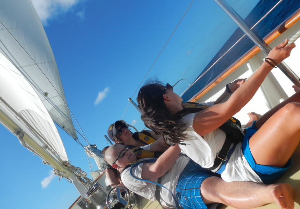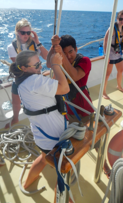Argo and the Argonauts are on another whirlwind adventure, tearing across the Caribbean Sea and island hopping as though we were modern-day pirates. We have now landed in Tobago Cays, where our anchor site is surrounded by gorgeous fringe reefs and spectacular islands with turtles galore. Today, we left Bequia at 9:30 a.m. under the guidance of our superb Captain Sam, and with sails set, we plotted our course and made haste towards our next destination. After completing our Oceanography course while underway, we slipped through a ring of coral and arrived in Tobago Cays, where we discovered a small island that was used in the film Pirates of the Caribbean. After snapping pictures, the students/sailors gathered their snorkel gear. They plunged headfirst into crystal blue waters for some snorkeling, where we happened to see an abundance of turtles, a plethora of hermit crabs living in gorgeous conch shells, and a very unique fish called a Flying Gunnard. After the phenomenal snorkeling session, the students experienced a rare opportunity: free time! The students spent a few hours relaxing on a gorgeous beach that had waves crashing on both sides, gorgeous yachts in their view, and the company of each other, which truly made the day a fantastic and unforgettable day. After the students washed the sand off their feet, they climbed back aboard S/Y Argo for a great Baked Ziti dinner. Fortunately, the student’s adventure for today does not end with dinner. After dinner, the students strapped their snorkel gear back on and headed back out into one of the many coral reefs and experienced their first night snorkel. What truly made the snorkel experience even more magical was that flashlights were not necessary due to the bright shine of the moon, but a few still used them to get a closer look at the underwater world. Spirits are high, and hopes are higher as the adventure continues to grow more extravagant and the bond of friendship grows stronger.
