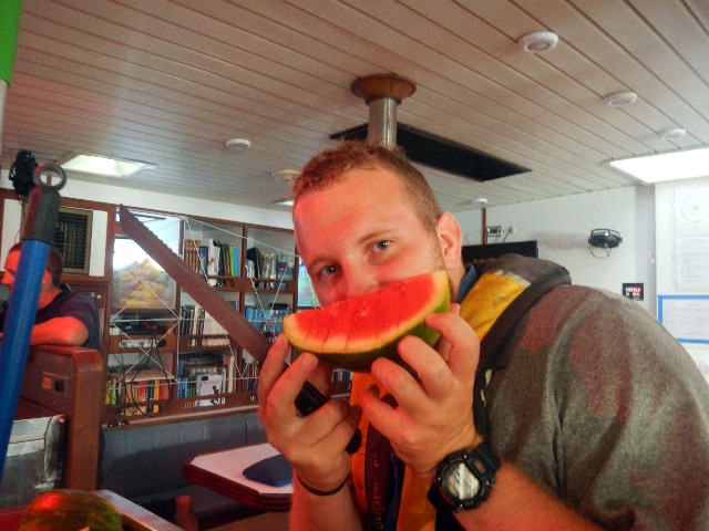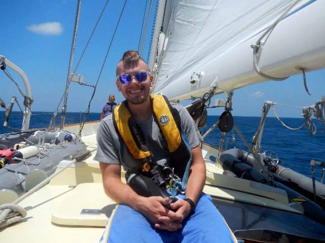 Everything onboard Argo seems to be gaining momentum as the days whip by. It occurred to me today, amidst yet another boat check, that the engine room is no longer a foreign land; long gone are the days of cringing at the sight of the heads. My bunk, all three by 8 feet of it, is as much my home now as the one I left sixteen days ago. It seems as though what used to be a daunting-looking spreadsheet full of boxes to check off and tasks to conquer is now no more terrifying than brushing my teeth or falling asleep. Today was a smooth one with no hiccups and lots of laughter. Dolphins played in our wake, and we gorged ourselves on delicious BBQ chicken. Over a beautiful sunset and a delicious meal, it truly hit me that we have become a family, and Argo has become home.