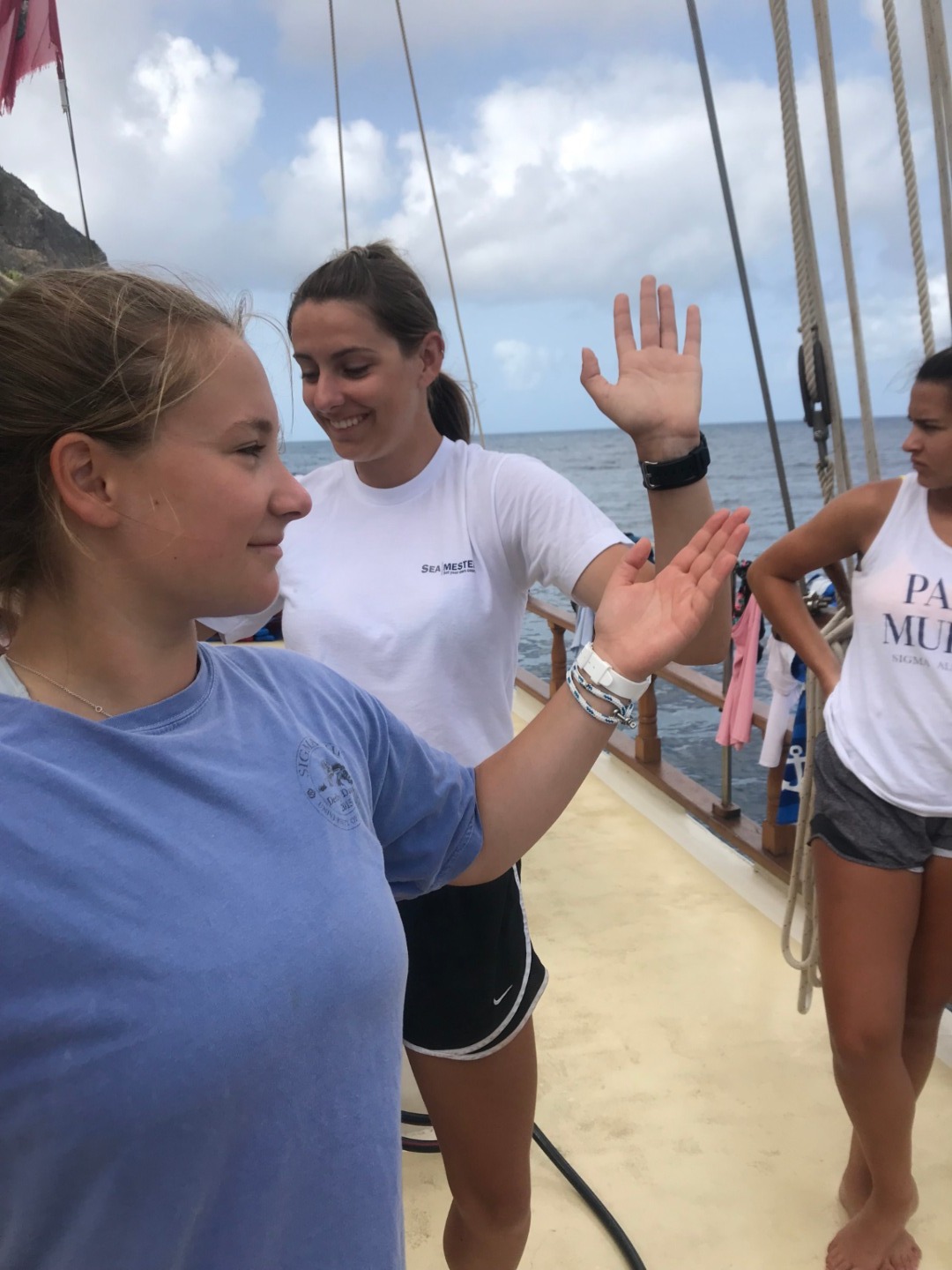 In groups, we prepared the boat for passage, took some sea baths, and we started to write sentimental cards for each other.