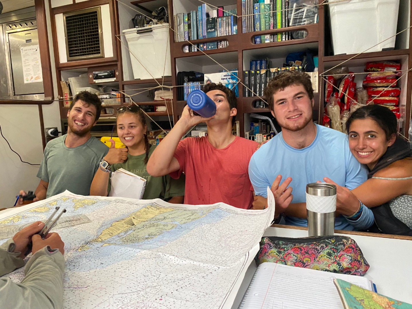 Lunch was a delicious sandwich bar prepared by Elle and her sous chefs, followed by an exciting Seamanship class full of practice problems for our NavMaster course. Marine Biology followed, where we got to see the organisms on our Galapagos fish ID quiz. The class definitely left us all excited to see some of these animals in real life in just a few days. Soon enough, it was time for deck showers. Bella’s contagious laugh distracted us from the slowly approaching wall of rain that we were sailing into, and we ended up having a great time showering.