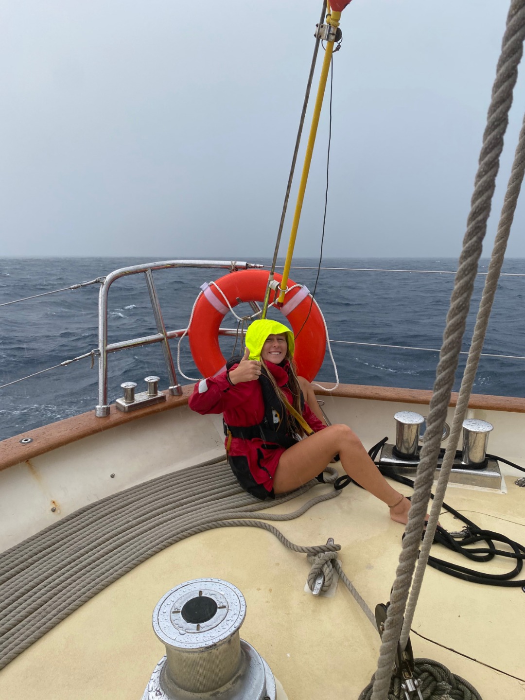 Dinner was a bit of a rainy mess, but everyone soon warmed up with delicious curry and rice, and the rain was a welcome respite from the past few days of increasingly warmer weather as we near the equator (!!!). Watch team 2 kept busy bringing down the flying jib for the night, and their enthusiasm despite the rain brought everyone’s energy up. After a quick squeeze, everyone broke into their jobs for cleanup, and we are now heading into another round of watches for some and a bit of well-needed sleep for others.