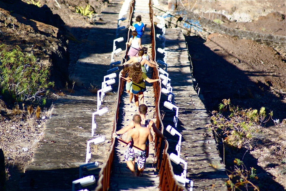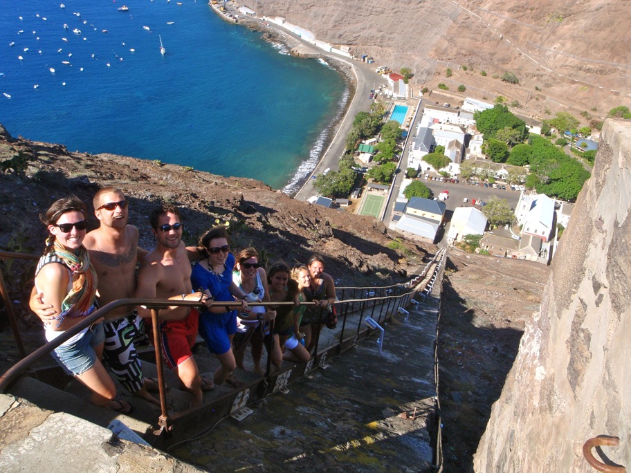 During the last few days of our passage to St Helena, I taught watch team two the English National Anthem in preparation for our arrival to this small British island in the middle of the South Atlantic Ocean. Our performance was at breakfast this morning as we tunefully greeted the crew with “God Save Our Gracious Queen.” Following breakfast, we completed some of our BA tasks that could not be completed in the dark last night: waxing and polishing the deck and the hull. Around lunchtime, we were cleared through customs and immigration and ready to go ashore. The quaint town of Jamestown is nestled in a deep volcanic valley on the northern side of the island. The town is full of history and has feelings similar to those of a small English town, perhaps 30 years ago, complete without any mobile phones! The crew was free to check out many of the sights, which for some included a trip up the 699 steps (600ft) to the top of Jacob’s Ladder, built-in 1829 for hauling manure up and goods down. Other highlights included the Castle Gardens, the old Post Office, the Consulate Hotel, the Market, and various churches in the town. Once back on board, we all enjoyed a dip in the amazingly clear and crisp Atlantic Ocean, all a little wary after seeing some large fish swimming by earlier today and also a manta ray sighting off the bow. We are just clearing up from dinner and about to have a Chemical Oceanography quiz and watch “Breakfast Club” for the Student Leadership Development class. I’m excited for tomorrow as the Queen’s Baton for the Commonwealth Games arrives on the RMS St. Helena.