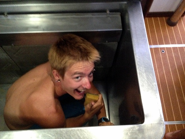 Just as the title says, Argo is looking as good as new. Our day in a beautiful new location began with a filling breakfast of crepes, and soon after, clean-up BA (boat appreciation) began. We set off cleaning every corner and every crevice since many of us have been feeling sick, and I definitely know after today that no type of bug or little organism is living in my cabin. The smell of bleach wafted through all the cabins and the saloon today.