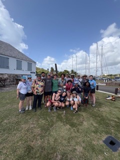 Our last beautiful morning in Antigua began with a classic Ben: Good morning, good morning, good morning. We had French toast made by Brooke and Dean Walsh, packed up our bunks, and stripped the beds to be sent out for laundry. We walked the laundry to Sam and Daves, where the woman working almost cried as she saw the heaps of dirty boat linens. We then ventured to Nelsons landing, where we shopped, enjoyed local juices and cuisine, and watched Ananya from India and England row into the harbor solo after crossing the Atlantic to become the first woman of color to do so. Lauren, Dean Walsh, and I got a picture with her and let her know how inspiring and incredible she was (She hopped in the water after her rudder when it fell off the boat in the middle of the Atlantic and saved her boat!). We are all so sad to leave Antigua and our beloved Vela and her incredible crew, but we have lasting memories of Richies jokes, Jamess banjo, and sailing stories to last a lifetime.