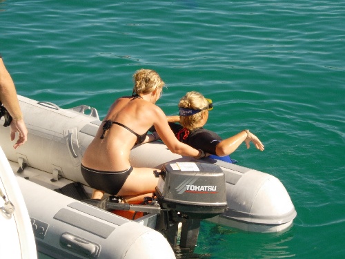 To everyone’s dismay, the wind still didn’t blow, so we still didn’t windsurf. It was still a good day, just as most are around here. Because nothing of an exceptional nature happened, I’m going to comment on the three gourmet meals prepared by Chef Auto. For breakfast, we had superb breakfast sandwiches. For lunch, we had mac and cheese, supplemented by a second straight day of jumbo hot dogs. For dinner, we had a traditional fiesta with cake for dessert to pre-celebrate Chantale’s birthday and as a farewell to the four shipmates leaving Near Enough tonight. We ate well today.