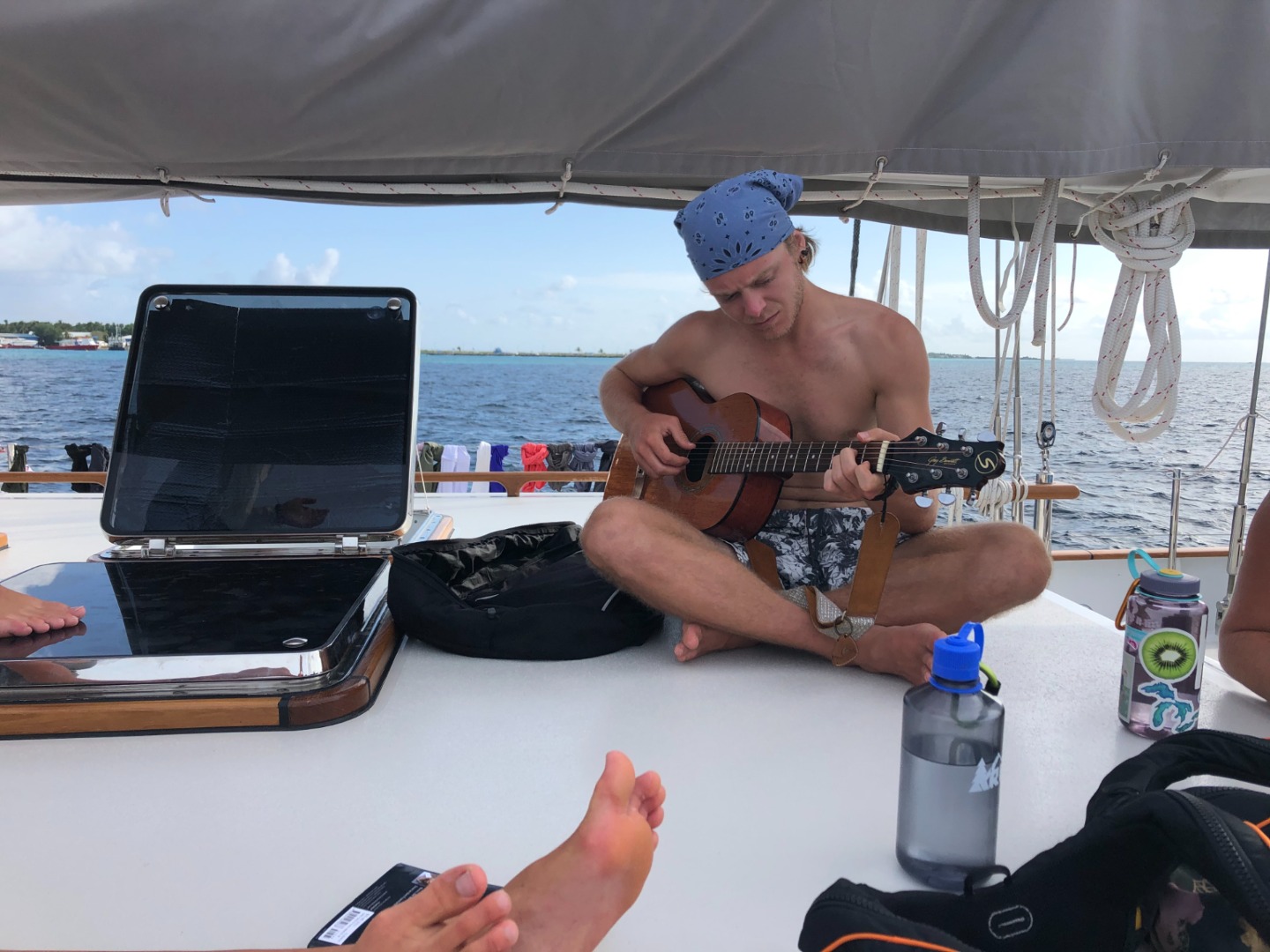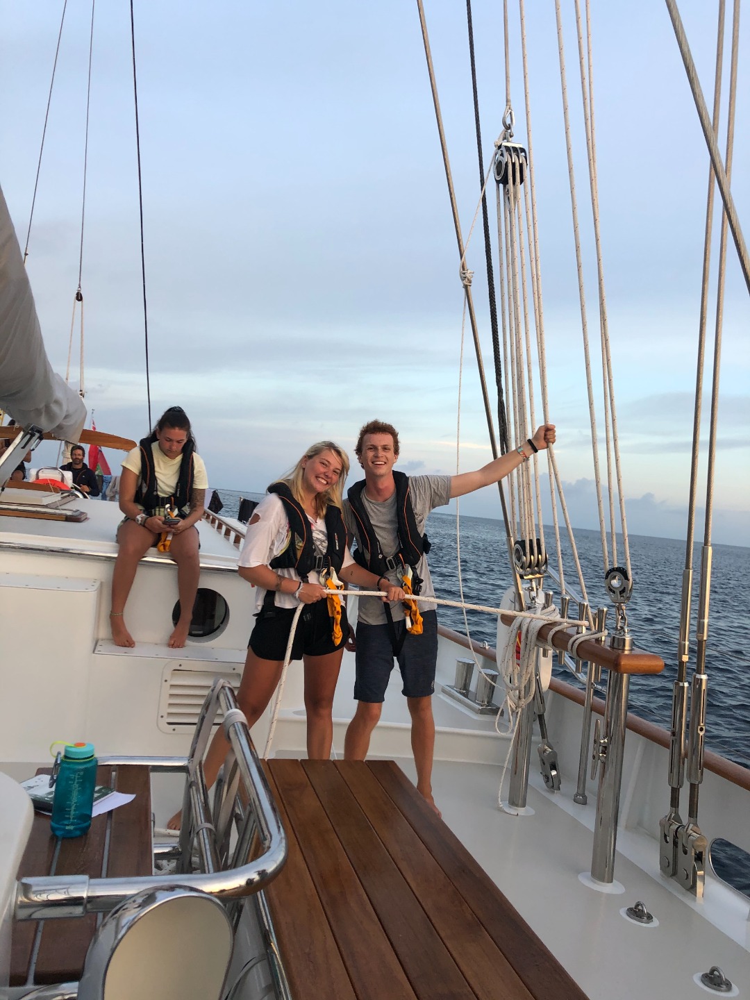 After dropping all our fun boards off :(, we started to prep for… OUR FIRST OVERNIGHT SAIL!!! So many people were willing to jump in and help, making passage prep really smooth. Sam was such a help, continuously coming to me for more things to do. As skipper for the day, I was so happy we got to sail because I learned so much about coordinating a passage, but I also didn’t know what half the items on the checklist meant. Our staff was so helpful in teaching us all we need to know, and it makes me so optimistic that we students will be able to do it completely on our own in a few weeks. Tonight our watch groups will be set in 3-hour increments, and we should arrive in Rasdhoo early in the morning. It’ll be a slow morning start, so everyone has the opportunity to get enough sleep surrounding their watches, but once we are up and ready, it should be a day of awesome SCUBA! The divers going for their Open Water Certifications, including myself, are having our first real open water dive, meaning we will no longer be able to stand up and breathe whenever we want:). Exploring new depths in a new area tomorrow should be incredible, and I am thrilled to see all the mysteries the underwater world has to offer.