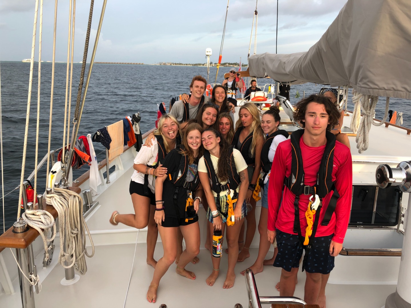 5. Group shot in PFDs, getting ready for our overnight sail