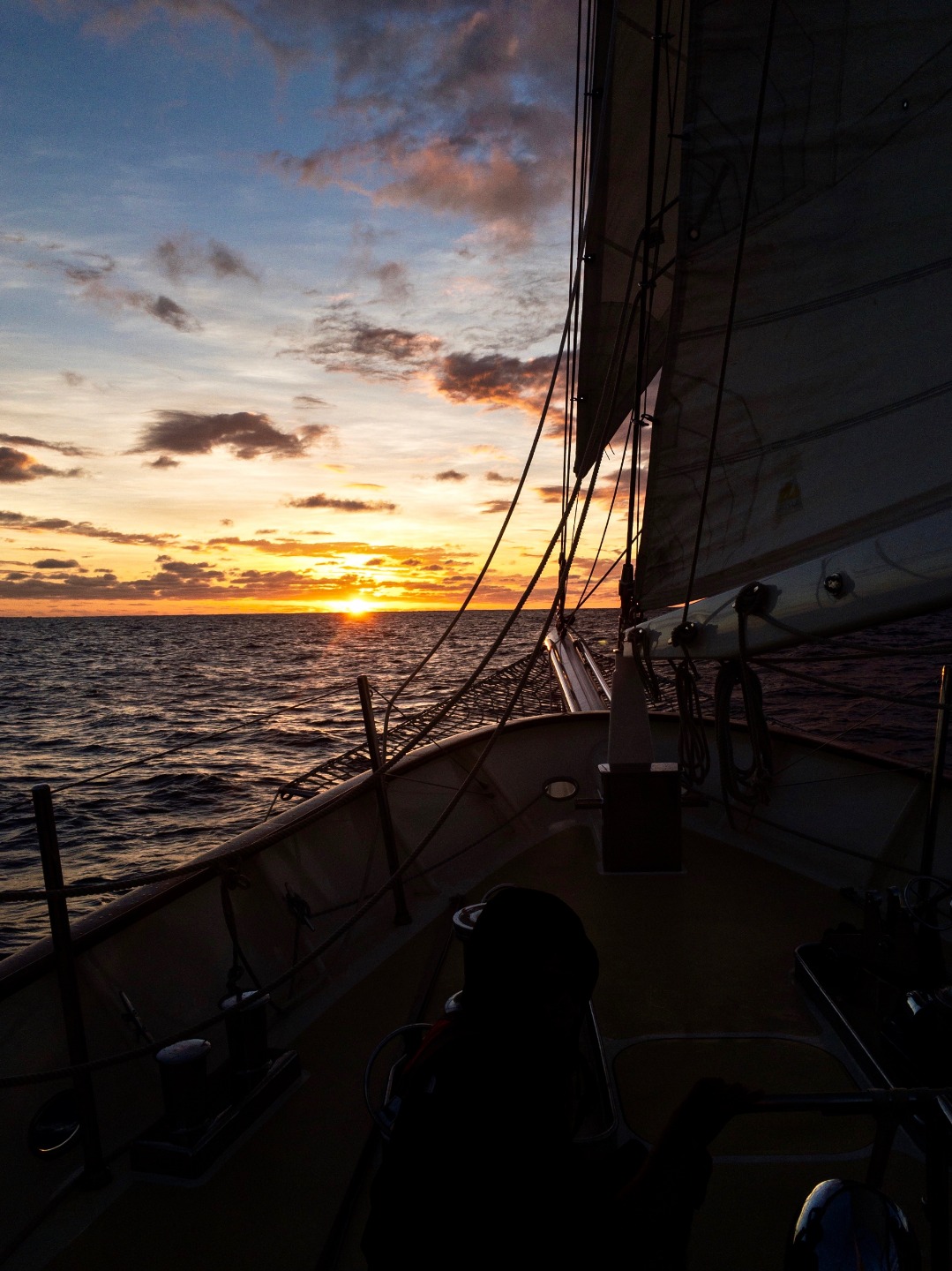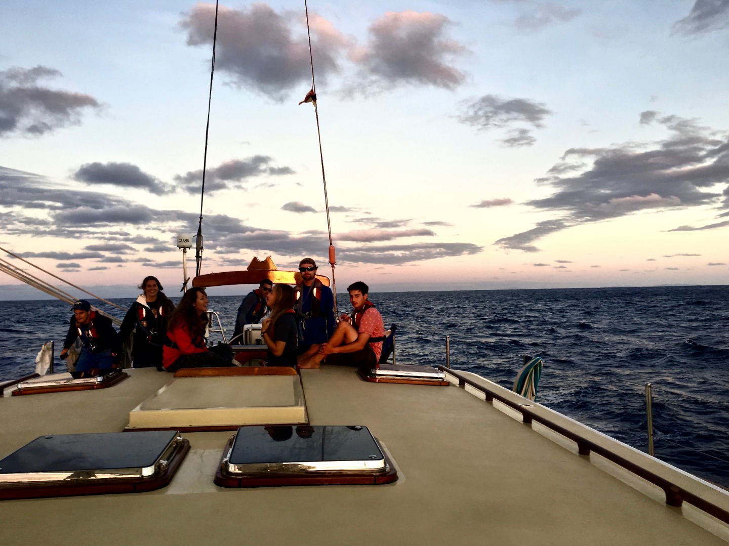 My day started at midnight with watch team 2’s 12-4 am watch (well, almost all of watch team 2). Charlotte spent over 6 hours in the galley so that we would have crepes for breakfast in addition to underway cereal. She made 121!!! Once we were done with our amazing underway breakfast, we settled into the day, spending the morning motor sailing through the many islands of Fiji. The weather was… well, let’s just say it wasn’t the best we’ve had so far, but the crew were in good spirits and thoroughly enjoyed getting drenched alternately by saltwater waves and freshwater rain (Type II fun at its best). After lunch and cleanup, we had an Oceanography class with a special guest lecturer Carolyn as well as two student presentations on El Nino and wave energy by Simon and Blake. After class, we had some thoroughly cold showers, but as Margaret D. said: “there wasn’t a person on deck without a smile on their face.” We were lucky enough to raise more sails and finally turn off the motor: peace and quiet. While everyone else either went back to watch or relaxed, PSCT had our Meteorology exam where we had to remember important things such as “hurricanes can cause serious damage to your health,” along with learning how to tell what kind of weather is nearby based on clouds and atmospheric pressure. The chef team made another amazing meal for dinner, and currently, everyone is cleaning up after dinner as I am writing this. As with last night, the stars are out in full force. Hopefully, they stay that way this time.