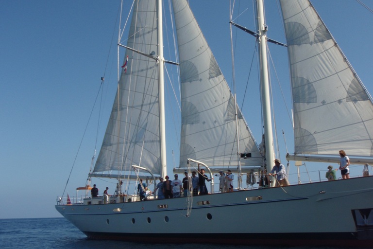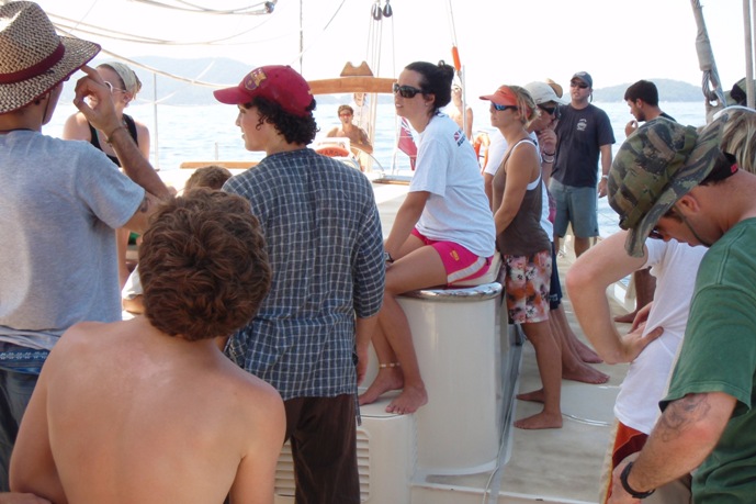 Every day of this trip has brought new challenges. Yesterday was my first dive as a certified diver, which, in my mind, pushed me way out of my comfort zone. One of the skills you need to accomplish is being able to take off your mask, replace it, and drain it in 50ft of water. The first time I tried it, I almost freaked out, but by the end of my training, I was fully confident. On another note, the Similan Islands have been absolutely incredible. While anchored at Similan #8, a sea turtle was kind enough to grace us with his presence to snack on the food we threw overboard. Today, in the passage, we also saw the annular solar eclipse. After today’s hard work involving raising sail, it is safe to say the crew of Argo is quite tan. Now that I think of it as I reside in my portside six-man, I have to think about my family and friends back home in New Hampshire who are probably fighting the good fight with old man Winter, and I hope all is well with them.