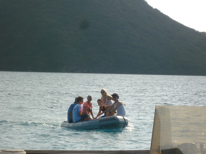 This morning was another fabulous day in the Caribbean. As skipper of the day, I attempted to be up before the rest of the crew. While I was catching a breath of fresh air up on deck, I was greeted with the glorious sight of dolphins off the bow. I reveled in the moment and the fact that we were all actually living aboard Ocean Star in these warm blue waters! I think we are all getting into a routine now and growing accustomed to jumping right into things after breakfast. The Open Water divers have a few lessons to finish up before becoming certified. Hence, the rest of us took the opportunity to either relax on the deck or go diving ourselves! Never to skip out on a diving opportunity, I jumped back into the warm Caribbean waters to take the Navigation portion of the Advanced Diving section. After a splendid lunch, we lifted anchor and cruised around the island into the classically postcard-like North Sound of Virgin Gorda. After dropping anchor at our new home for the night, the Open Water divers went back to the grindstone to bust out a few more lessons. This provided the rest of us with the opportunity to explore the sound. After catching up with our sister ship, Argo, to acquire another dingy, we cruised around, taking in the scene and stopping at the docks to look at some really big, fancy yachts. The late afternoon allowed everybody a chance to get back on land as we headed ashore to our introduction to the Leadership Development Course. Now, after dinner, the Open Water divers are at it again, taking their written final and coming one step closer to being certified divers. Yes, it is another splendid day in the Caribbean!
