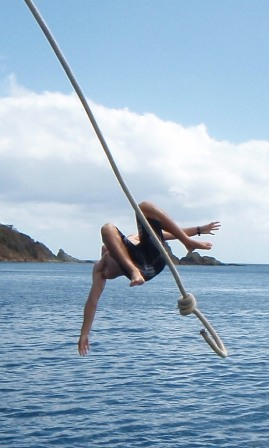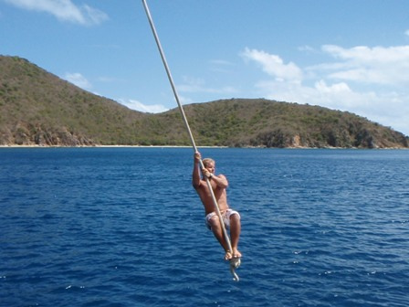 We had multiple choices of how to spend our day in the BVI. We chose to motor over to Norman Island to snorkel the caves in the rock face close by. We also set up the boom swing, which was extremely fun trying to outdo everyone else stunt-wise. The day ended with the closing program and a slideshow of our past 78 days.
