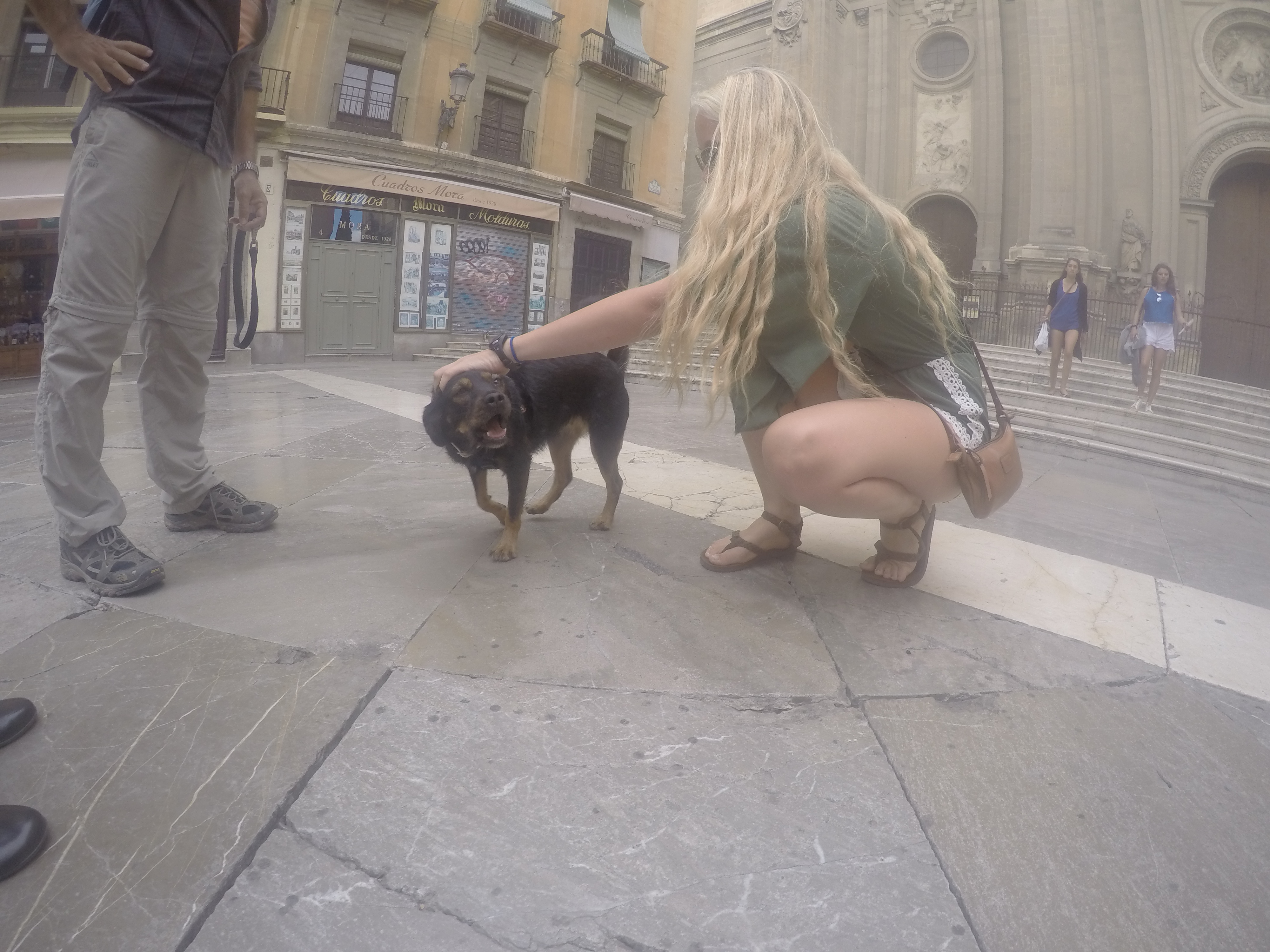 The smell of cereal and milk got everyone out of bed at 7 AM. HA, just kidding. I had to pour water on Brahm to wake him up. The day could only get better. We headed to Granada on a minibus from Motril. We spilled into La Alhambra and helped Veronica find her love, her muse, Keller. The rest of us toured La Alhambra and headed off into the city. We ran into a number of dogs, pictured below. Kristian, Ava Leigh, Chloe, and I went into an awesome bar/cafe, which introduced me to the greatest invention of all time – butter and honey on toast!