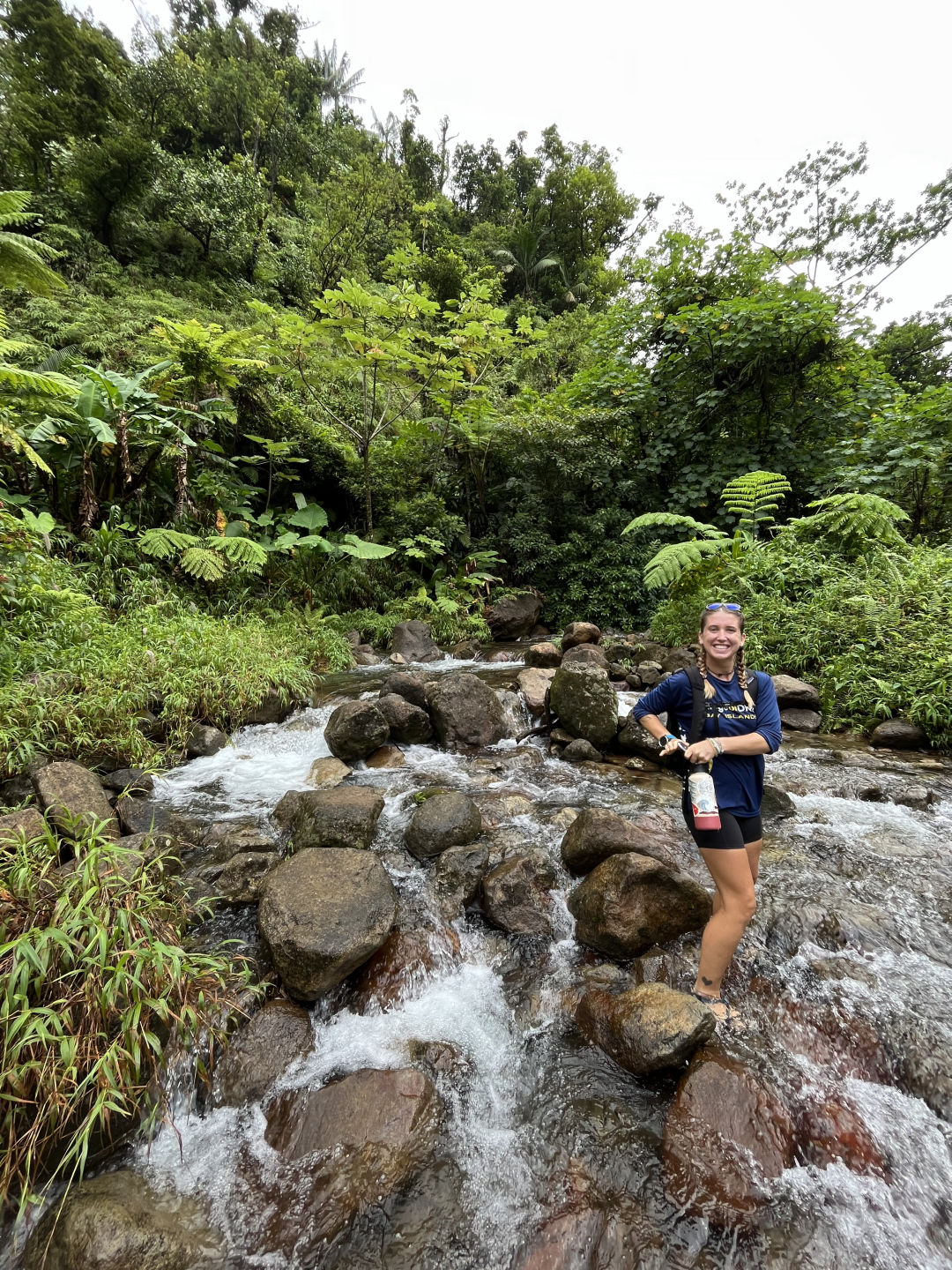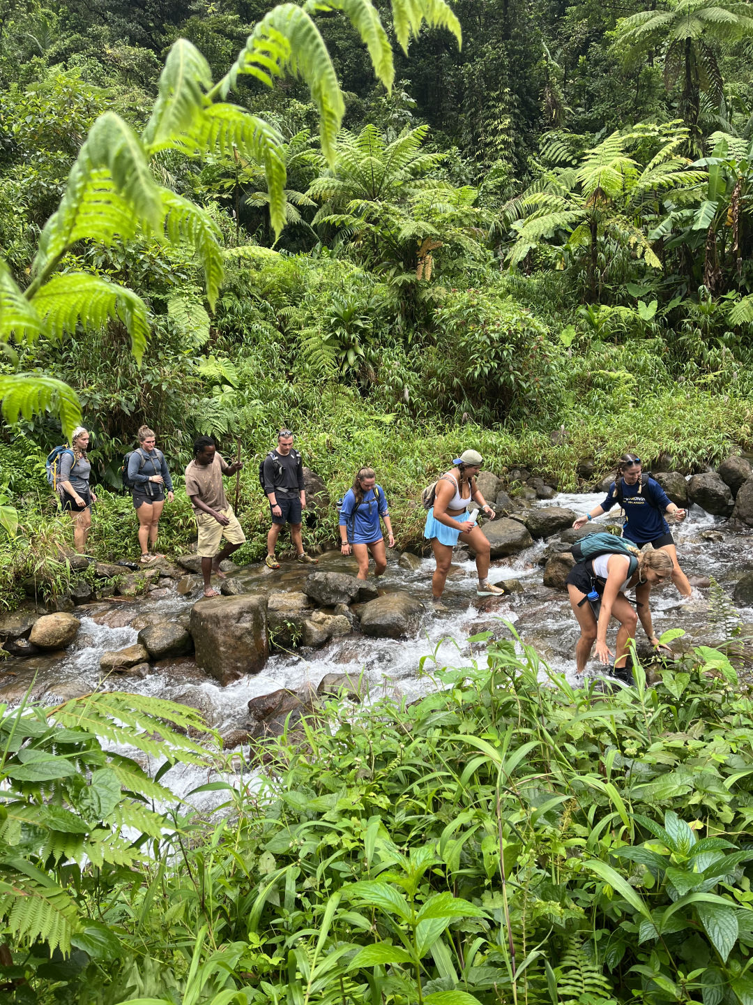 It was truly a great day to have a day down here in Dominica. We started the morning with the best Brazilian cheese bread north of the equator, made by our favorite Brazilian, Alexis. We all packed our bags with snacks and rain jackets as we loaded up in a couple of vans and headed for the highly anticipated Boiling lake hike! We were guided through this hike by a fan favorite, Pancho, who sliced and diced us to the boiling lake. The hike was beautiful, leaving us speechless for 9 miles and 8 hours. Along the hike, there were many natural springs that we all took advantage of by filling our water bottles and jumping into. As we reached the valley portion of the hike in the sulfur fields and waterfalls, Pancho showed us how to grab the mud and rub it on our faces to exfoliate our skin/war paint. The hike was breathtaking, and we were all in awe when we reached the boiling lake. When we got back to the base of the hike, some of us bought homemade guava and passionfruit juice to quench our thirst. We all packed back into the busses and were rewarded with a trip to the air-conditioned supermarket, where we all had a field day and grabbed as many snacks and drinks as we could. We made our way back to Ocean Star with a million grocery bags filled with ice cream, body wash, and plenty of candy. We finished the day with another unreal dish of Gyros made by Alexis, Carly, and Aidan. Spirits are high here on Ocean Star, but everyone is exhausted as the kiddos went to bed early with a big day 50 on deck for tomorrow! The sun was chirping, the birds were shining, and the rain was wet, but wow, life is good here on day 49. We’ll see you all in a month. Thanks so much for reading, and have a great rest of your week!