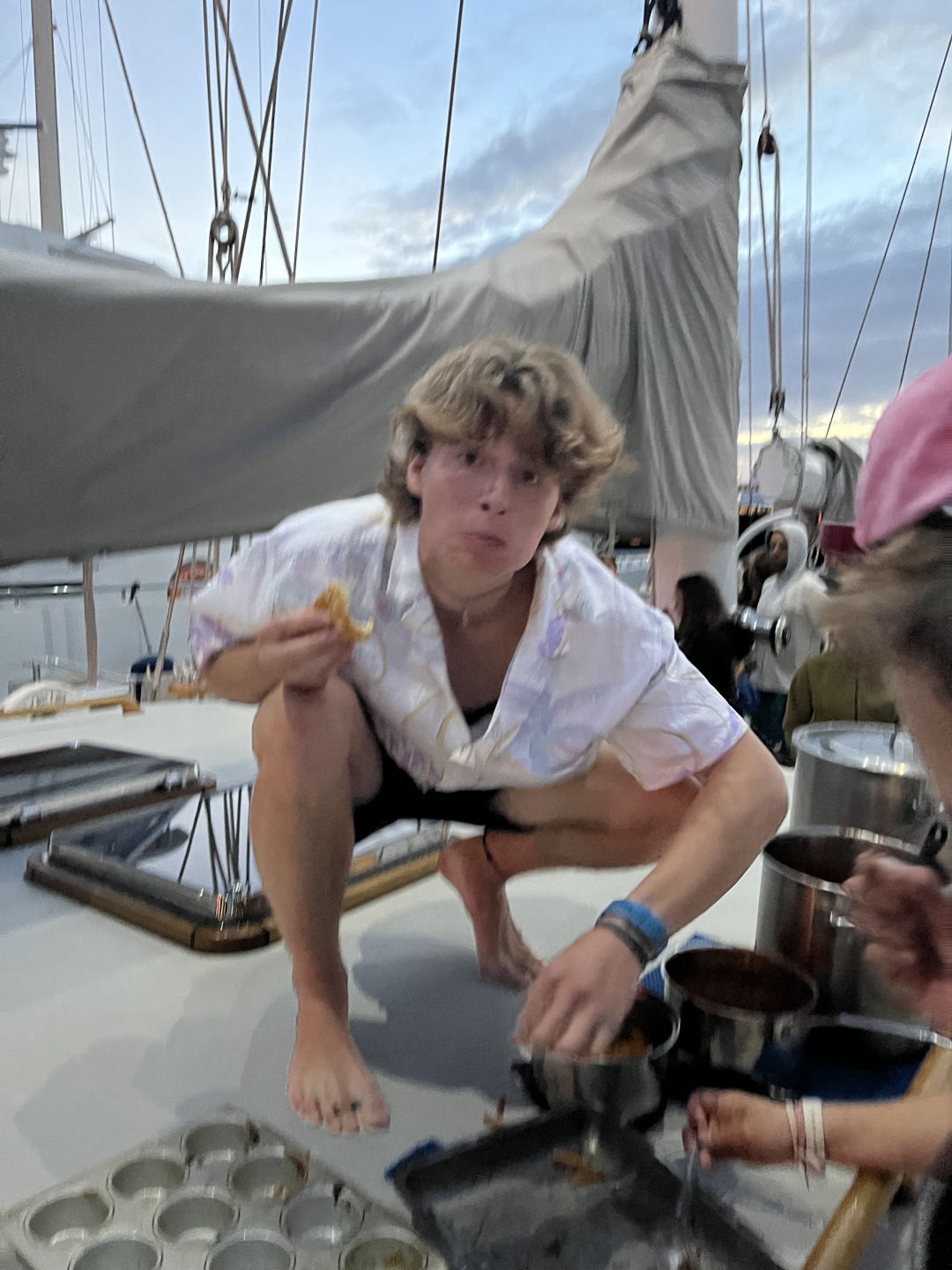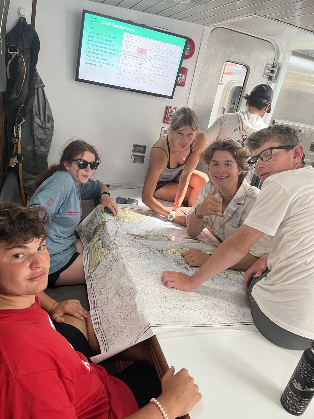 After a pleasant wake-up to Gangsta’s Paradise (rest in peace Coolio) and a breakfast of yogurt and granola, we had classes. Lots of classes. Today was the first day that we had three classes throughout the day, but all were interesting, and I don’t think anyone fell asleep (a fairly common occurrence with our limited sleeping times)! Oceanography was first, and we learned a lot about sediments! Sounds boring, but I promise it isn’t. They’re super important to learn the history of the earth, as well as important petroleum sources for the world’s energy. Max and Owen led our leadership class today, and as the jokers they usually are, we were all pleasantly surprised to find they’d prepared extremely well, including several interesting discussions on what makes a good leader and whether or not evil but effective dictators such as Hitler count as one. They also had a game planned to play on deck, but sadly we ran out of class time.