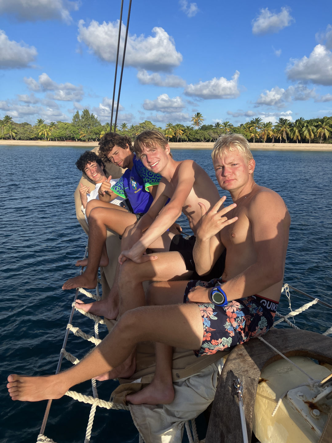 Imagine playing kind of a scavenger hunt but on a whole island. YES, that was what we did this afternoon. Only with our shoes and water bottles we did do the Leadership Challenger course. There were two teams, and whoever did it fastest won. Even though we lost by 2 minutes, the whole experience was very fun and interesting. At each point of the game, someone stepped in as a leader, and that united us as a team. Our course took 2 1/2 hours. Our team did the impossible, we forgot the map of the boat! So, problem-solving instincts had to step up as we were basically guessing where the places were, and our only source of direction was the locals. After the challenge, we had a very peaceful moment at the bow (that is the front of the boat for the rookies, haha). I and the boys had quite a laugh with Thomas (again). I finished my book today and will start reading another one already tonight!