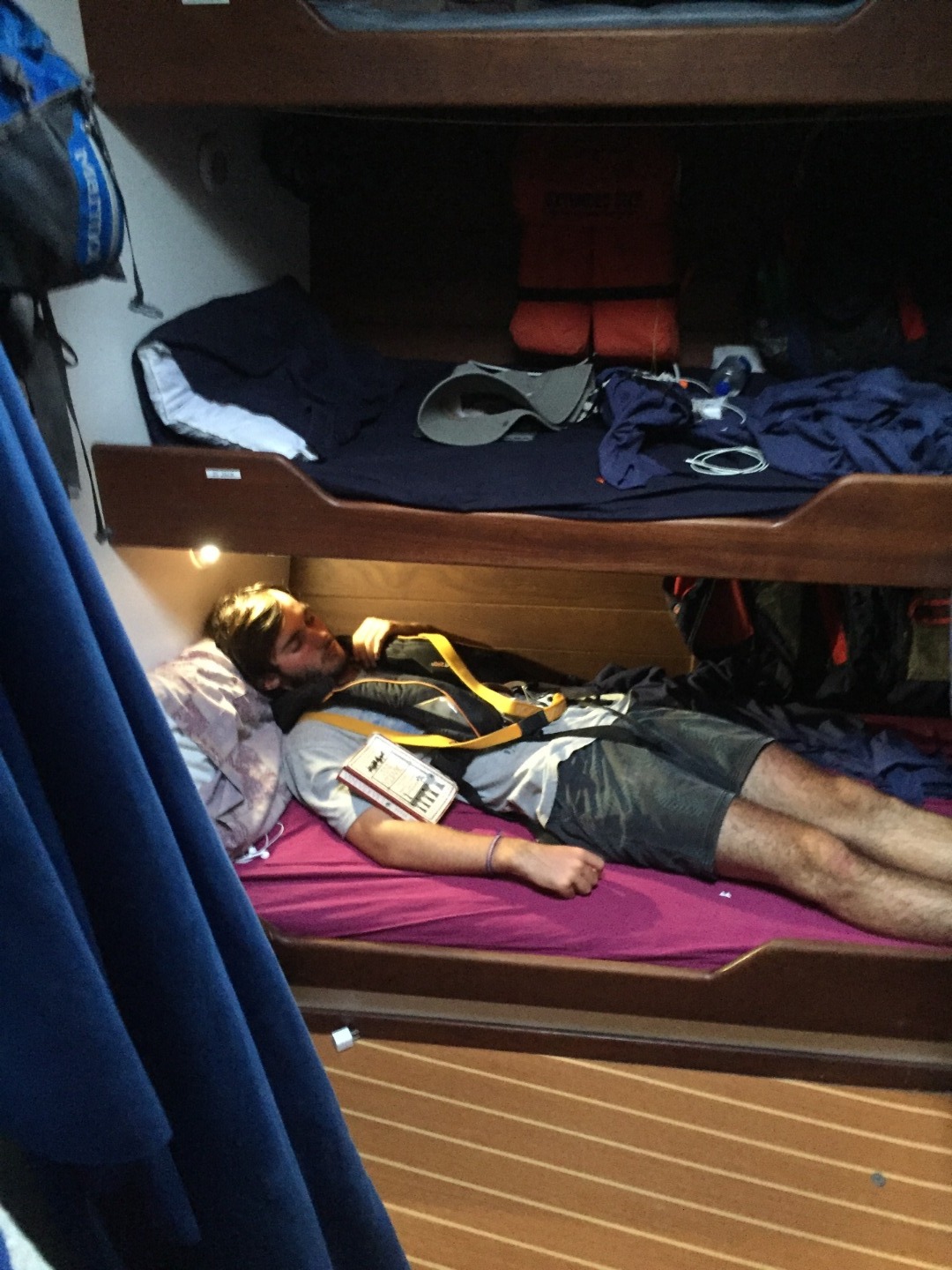 Pictured: Ivan on the helm and Eliza with soft smiles all around, Meg and David looking at how far the nearest area of land is, and our skipper caught mid-slumber with his PFD still on, serving as a living symbol of how Argo values safety.