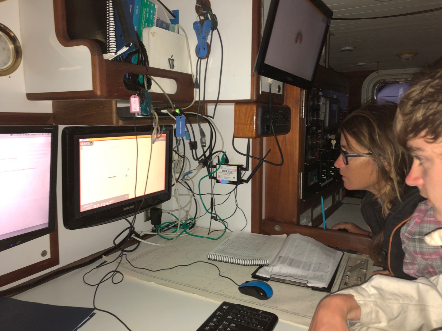 After hearing the alarm, we grabbed our PFDs and raced up on deck to muster at the cockpit, where we would be notified that we were going to run an abandon ship drill. After running through our drill, some of us stuck around and helped out trimming most of the sails as the wind got stronger. After that, we had deck showers, and everyone split off to do whatever was on their agenda. This is where our extra hour came in especially handy. Jenna and Brittany worked on their Dive Master course, Watch Team 3 went back on watch, and I learned a thing or two about navigating for Seamanship class. Eventually, dinner rolled around, and the chef team had cooked up a delicious meal of Mi Goreeg, a tasty Asian dish. After dinner, we did our daily tradition of appreciation and squeeze, then proceeded to go back to clean up. As I’m writing this blog, I’m looking at our course on the monitor, and I’m astounded at how far we’ve come and am looking forward to the rest of the journey we have ahead of us.