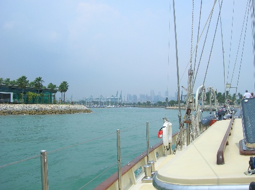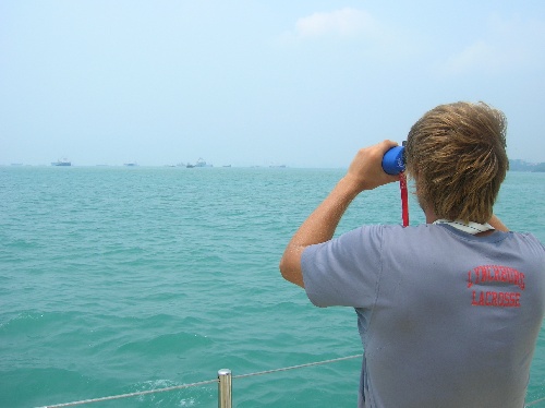 After an overnight passage leaving from the pristine waters of Pulau Aur, we arrived in the most heavily trafficked waters in the world. Following a successful navigation of the Singapore Straits, we entered Singapore’s quarantine zone. While waiting for the immigration boat, the crew gave some good lovin’ to Argo, shining all her steel and getting everything straightened away. A couple of hours later, we were allowed to leave quarantine to go to the marina. Once all straightened out in the marina, we all went ashore to explore. Singapore is huge. Later that night was a costume party and pizza.