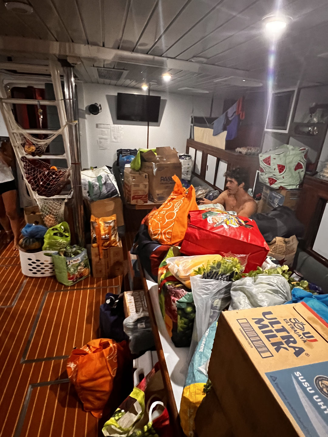While everyone was having fun times in the waves, other people were having fun times on the boat – perhaps even more fun. Smash was servicing the two generators on board that powered the boat (and the 100x gravity Bali Time Chamber). While Tom was replacing and flushing the coolant from the main engine. I mean, I. This is Tom.