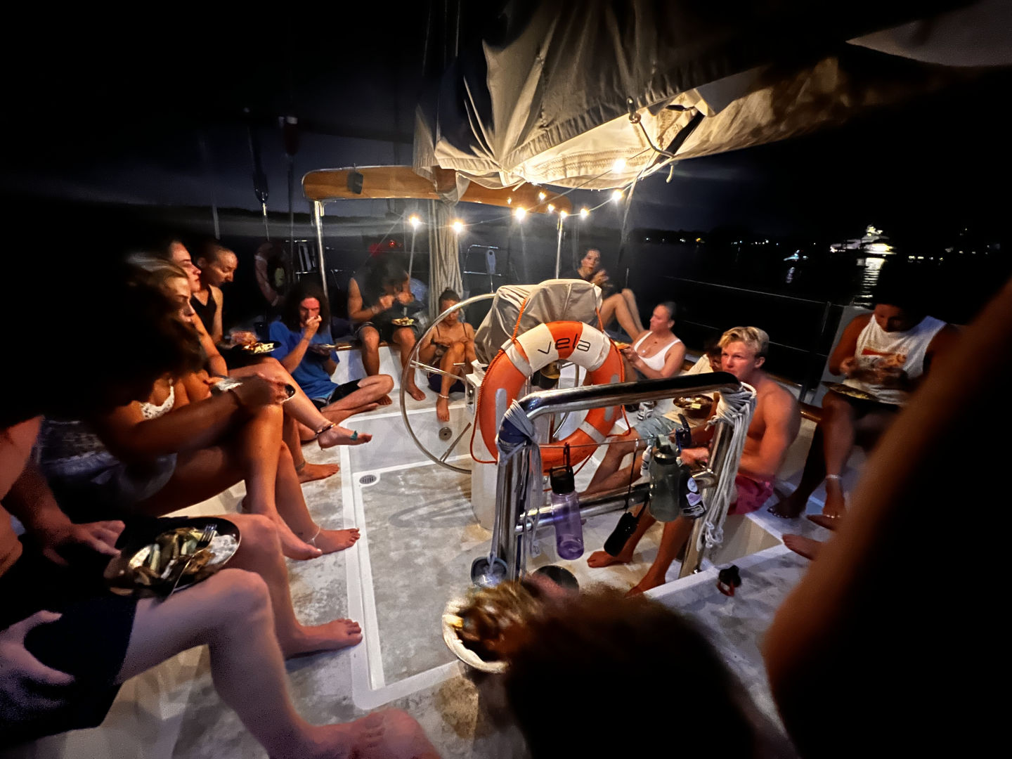 Meanwhile, Steph, Allie, and Jake were buying 35 days’ worth of groceries for 25 people – enough to fill 18 shopping carts across three grocery stores. The Bali store employees were so helpful, although concerned about how big our family could possibly be and whether we were opening a restaurant. Allie and Jake met up with the students to go surfing, and then we all filled just about every square inch of Vela with groceries when we all got back – a miraculous feat ending around midnight. We had a delicious dinner of chicken wings prepared by Jackson and then celebrated Allie’s birthday with some cake, which may or may not have been celebratorily smushed in her face.
