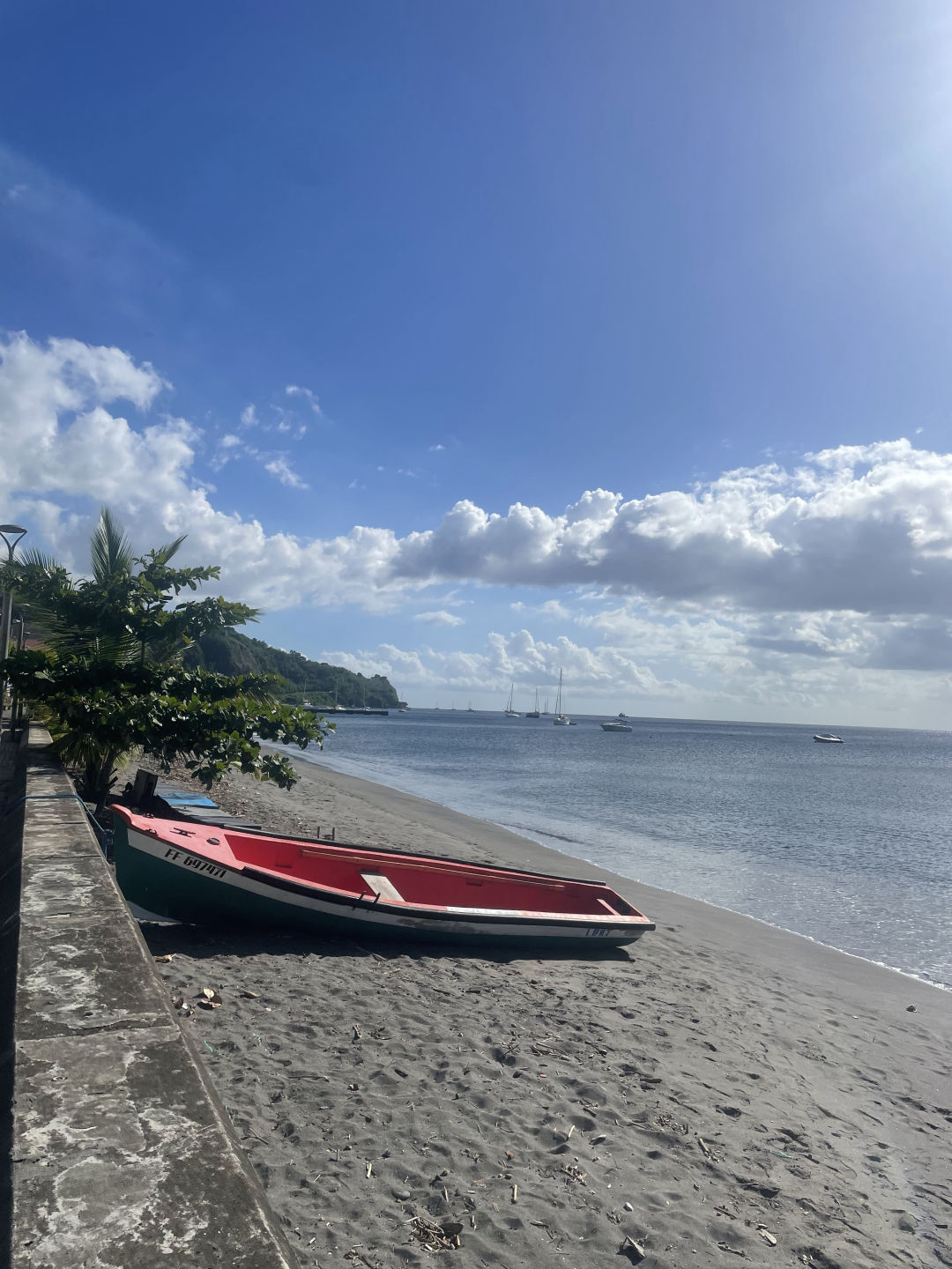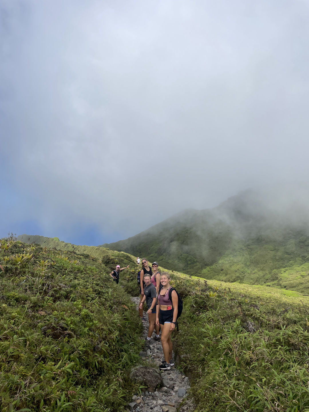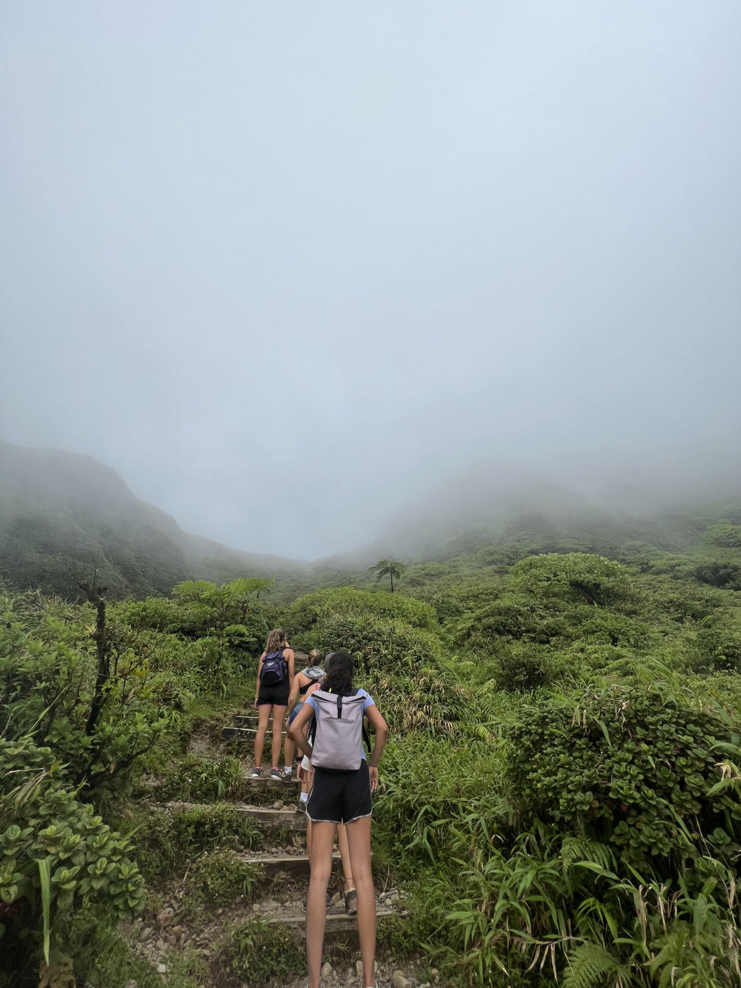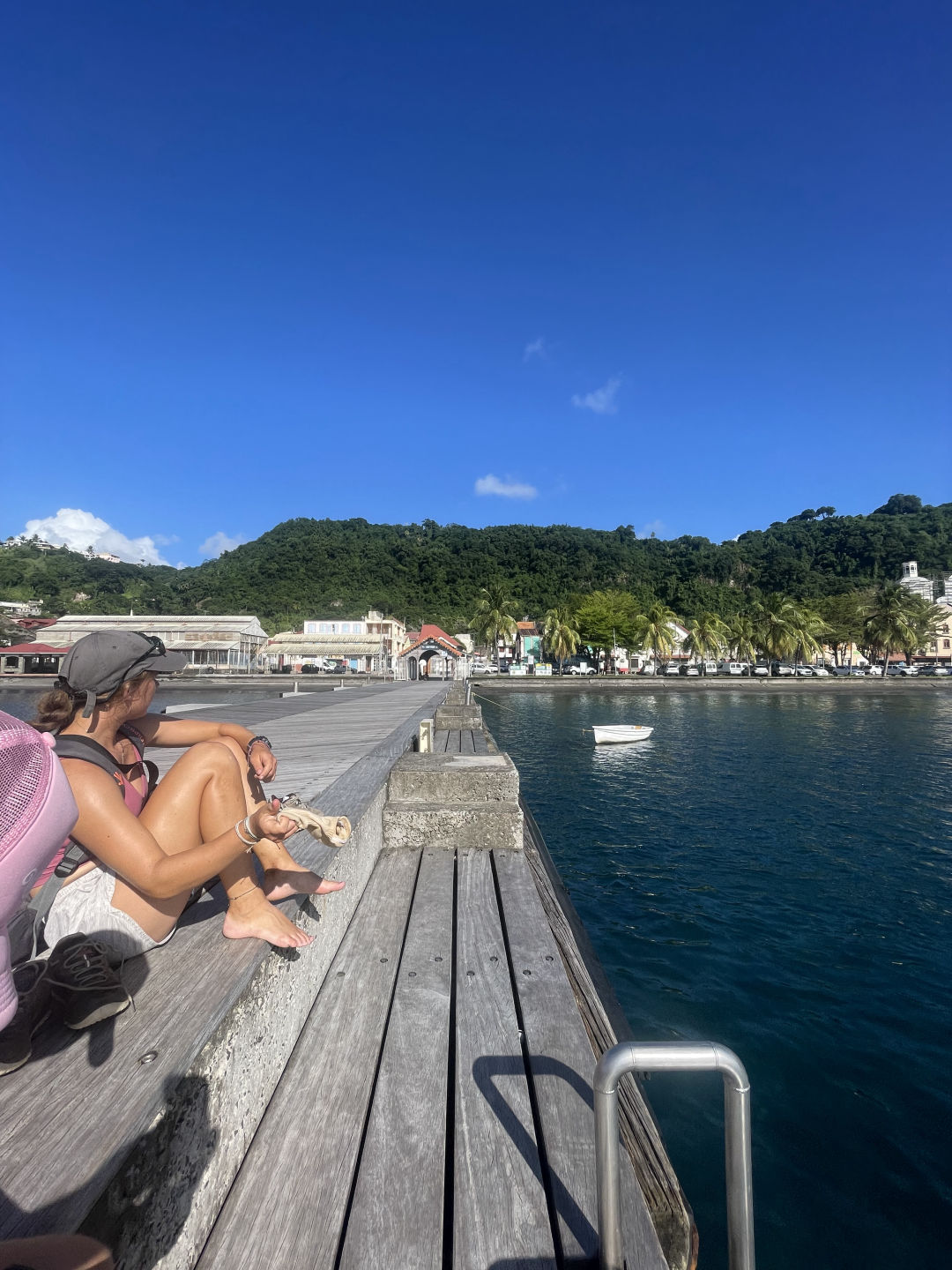 The hike consisted of a short taxi ride and then around a 5-hour round trip walk up Mt Pelee. It began as an easy cut-in step into the trail, and gradually, the brush became thicker and more beautiful at the top, with a bit of trailblazing required. It was fantastic to have a mildly cool mountain wind, which smelled amazing because of the many plants and trees. This was a hike I’d never done before, and it was so worth the walk for the amazing view of the ocean at the top. We felt safe in the capable hands of tour guide Freddie; it’s great to know that when we go out, he’s gonna be the man that goes along with us. After we returned to the seafront from the hike, we were all super thankful to have some shore time in the small town of St. Pierre. It was great to be able to eat some French cuisine while in the beautiful Caribbean sunshine and also stock up on snacks.