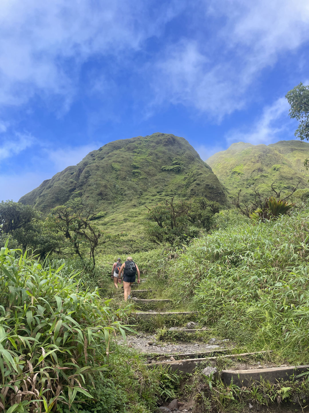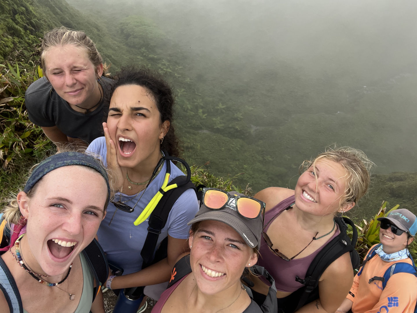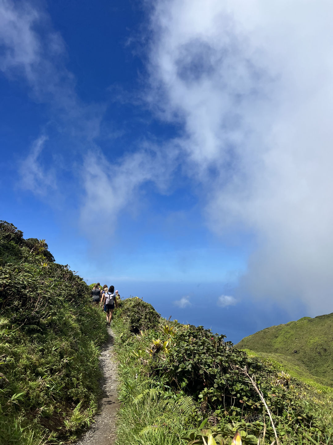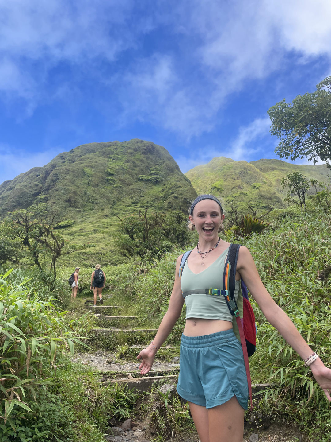 The hike consisted of a short taxi ride and then around a 5-hour round trip walk up Mt Pelee. It began as an easy cut-in step into the trail, and gradually, the brush became thicker and more beautiful at the top, with a bit of trailblazing required. It was fantastic to have a mildly cool mountain wind, which smelled amazing because of the many plants and trees. This was a hike I’d never done before, and it was so worth the walk for the amazing view of the ocean at the top. We felt safe in the capable hands of tour guide Freddie; it’s great to know that when we go out, he’s gonna be the man that goes along with us. After we returned to the seafront from the hike, we were all super thankful to have some shore time in the small town of St. Pierre. It was great to be able to eat some French cuisine while in the beautiful Caribbean sunshine and also stock up on snacks.