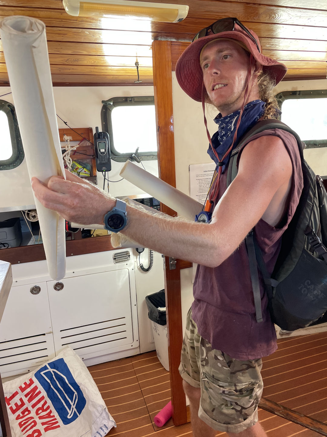 After we returned to the boat, we had a fantastic leadership presentation from Amelia about the dynamic of working in teams and exploring the things that make us more efficient and successful. Obviously, we all felt like this team is, at times, the very definition of efficiency, but we always strive to be better with new innovations. I often like to compare it to working at NASA. After this, everyone got ready for a spooky Halloween night dive. The night dive sight was on a wreck, which had been sunk in the most recent volcanic eruption in 1902. The wreck was in pieces, and it was fantastic to see how the reef had covered the wreckage with new coral and life. A couple of the divers saw a moral eel have a spectacular chase and battle with a squirrel fish. After a dramatic and incredible struggle, the eel won and ate the squirrel fish. What a thing to witness, basically something straight out of a David Attenborough documentary and probably something we will only witness once in a lifetime. Post dive, freshly baked cookies, rice crispy treats, and hot cocoa were awaiting us in a spooky red–lit and ghost / decoration-covered galley.