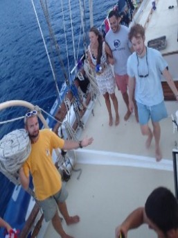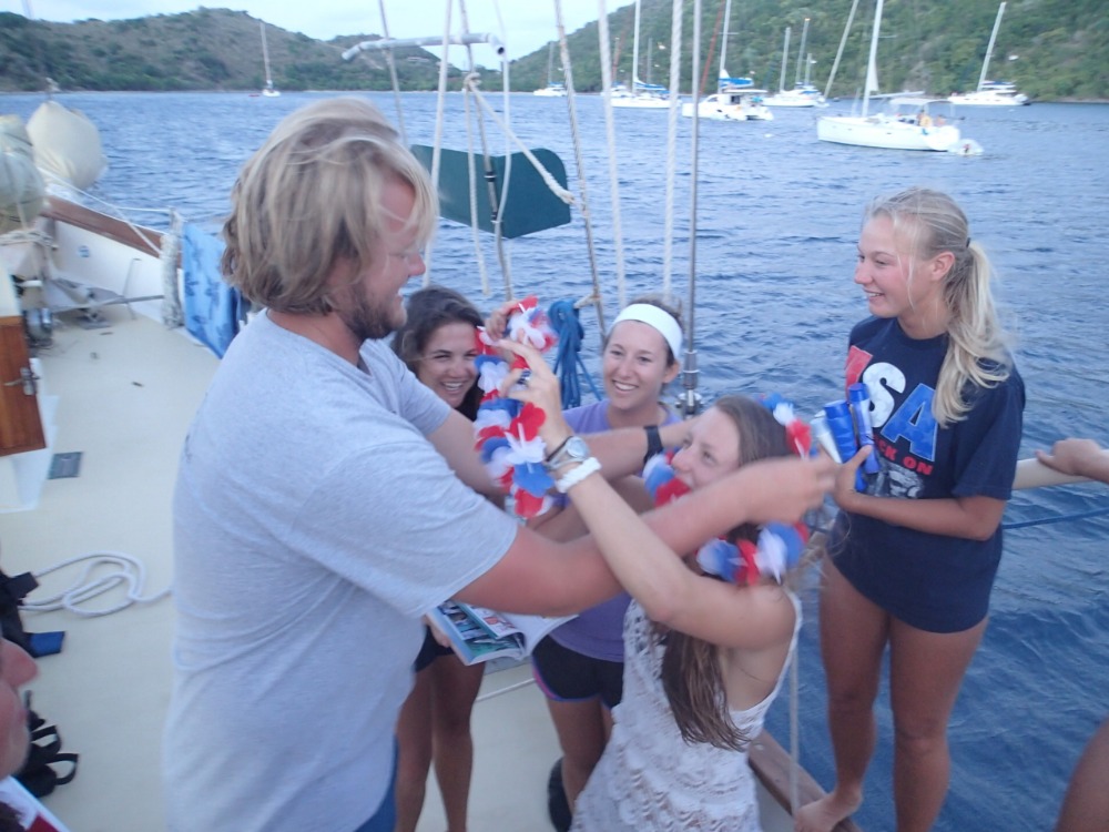 Meanwhile, the advanced group dove into the HMS Rhone wreck sight and saw a number of stingrays and sea turtles. Leanna, who is currently shoulder hovering, claims to have battled a fearsome shark and saved the group with her reckless courage, but I cannot attest to the truth of these events as I am merely a humble, open-water diver. After the advanced group completed their dive, the open water group, including myself, executed a similar yet more mundane version of the same dive but were fortunate enough to see a lionfish and a barracuda and swam through the hull of the old wreck. This evening, master chef Hannah and accompanying chefs Amanda and Chip cooked Thanksgiving dinner with the mindset of efficiently killing off both American holidays in one 24-hour period. The Turkey dressing was superb, to say the least. To add to the festivities, we are currently eagerly anticipating the marriage of Ashley and Chip, whose feigned engagement dates back to the torrid shores of St. Barthes. Their love is true, strong, and should last all the way until we leave in approximately 48 hours (tears). I hope you all are having a wonderful 4th of July. We certainly are.