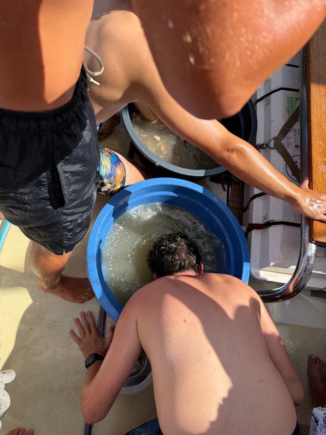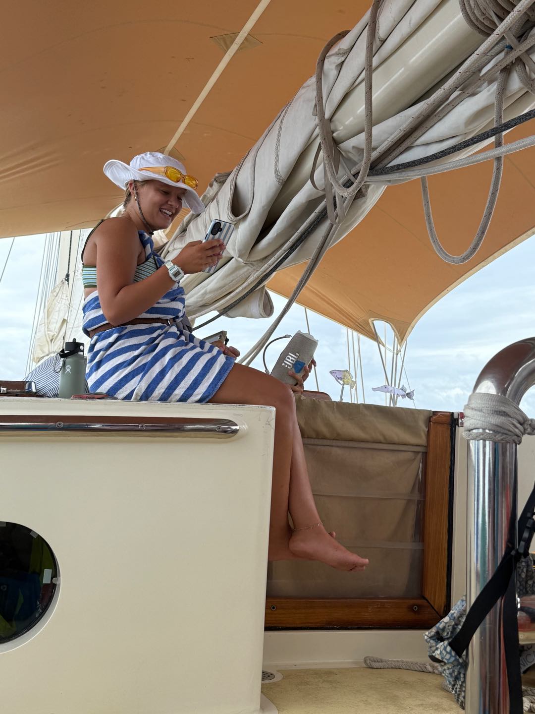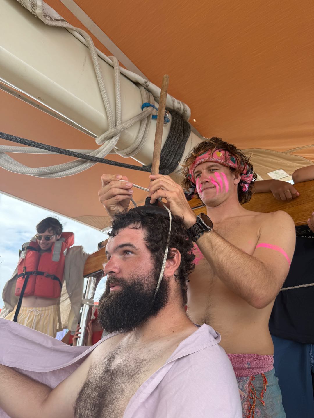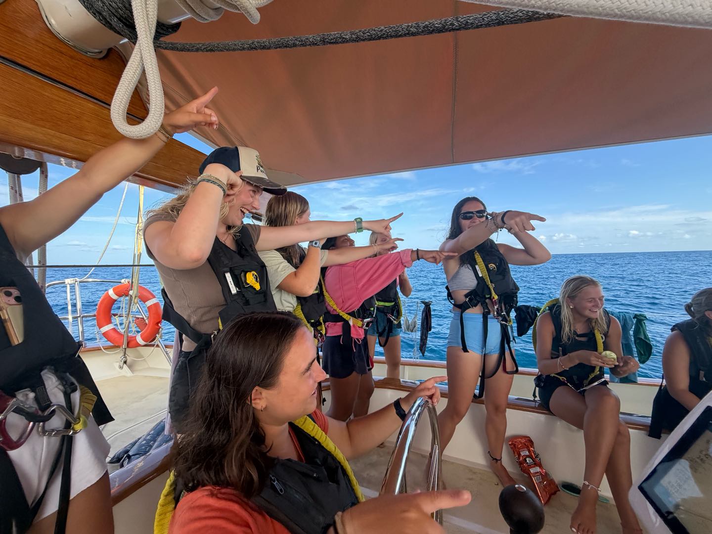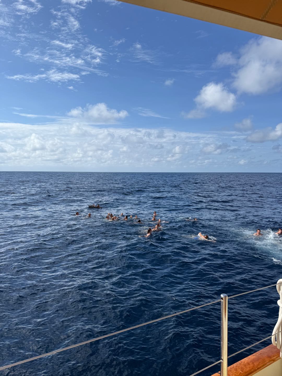 What is up, my loyal readers? Today was a pretty eventful day. We finally crossed the Equator. Which is why I have been selected to write this blog, they needed someone with the necessary skills required to represent the festivities of today (it was simply my day to be skipper). I started my day, technically, on the 12:00 – 4:00 AM watch. It was very chill, as watch team 3 is the chillest of the watch teams. After that, I went to bed. End of Blog Nah, just playin’ gotchu guys. I woke up for lunch, which is exactly when I learned I was skipper for the day. After lunch, we were informed by Captain Nick of the ensuing festivities. In order for us pollywogs to become shellbacks, we had to enter a series of trials to appease Neptune’s court. If that sentence doesn’t make any sense to some people it prolly means you’re a pollywog and I can’t be seen talking to you. Anywho, for my skill, I performed “Hamlet as told on the streets,” which my family will certainly understand, and if you don’t, then I can’t be seen talking to you. Everyone had great performances, and all of us pleased Neptune. After our performances were rated by Neptune and his cronies, we were then sent into our next trials. These consisted of a slip’n’slide on deck, being baptised by Neptune, and bobbing for apples in the dishy pit. Finally, we reached the moment we had all been waiting for. It was time to physically cross the Equator, but we were not going to be sailing or motoring across, that would be far too mundane for any Sea|Mester crossing. No, we were to swim it. So, Captain Nick gave the order to put on the ladder and jump into the middle of the Pacific Ocean. So that’s exactly what we did. It was amazing. You guys realize what kind of bragging rights this gives me? I’m officially better than almost everyone. I, and I guess my fellow crew on Argo, have officially swam across the Equator. Pollywogs no longer. Once we got back on Argo, we wrapped up the day with a lovely meal cooked by our head chef, Colby. Today totally ruled.