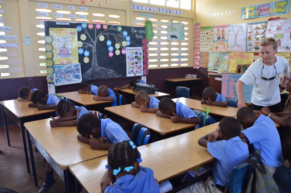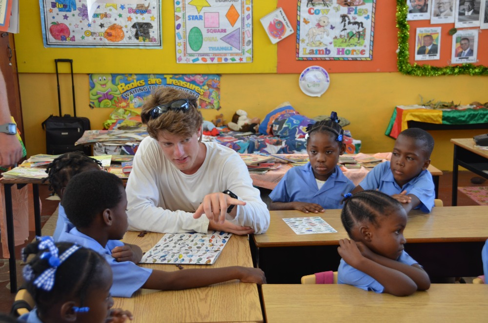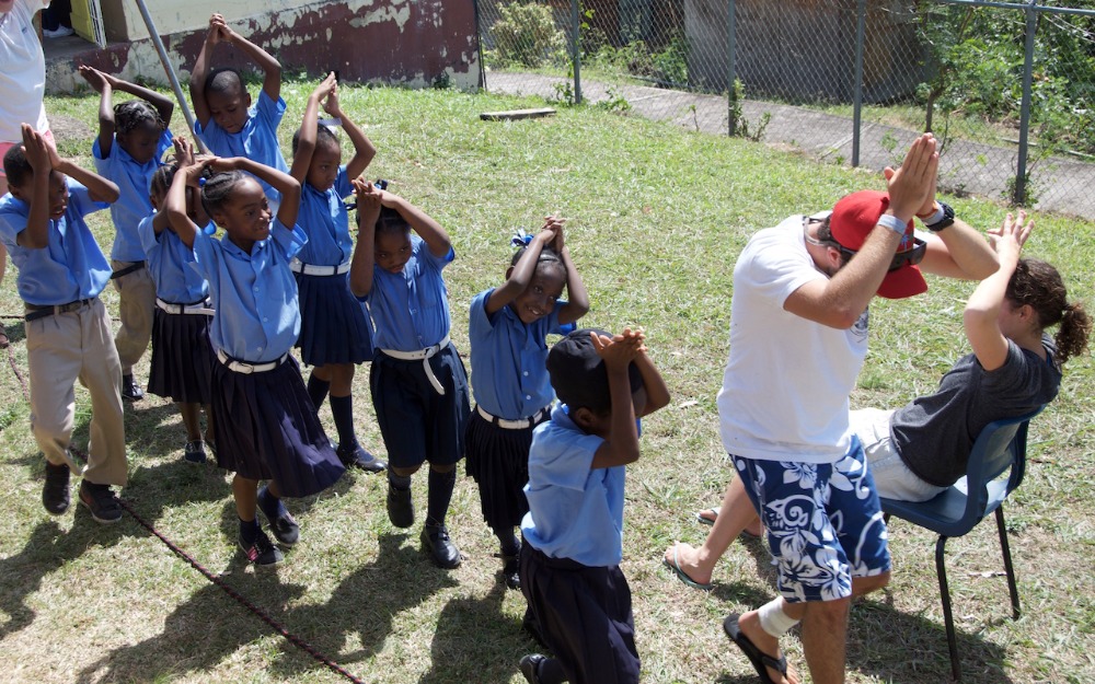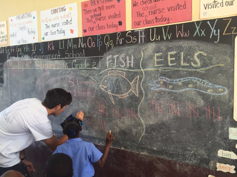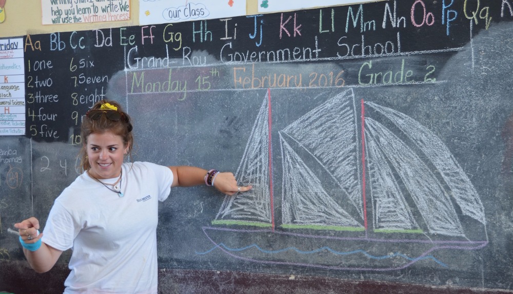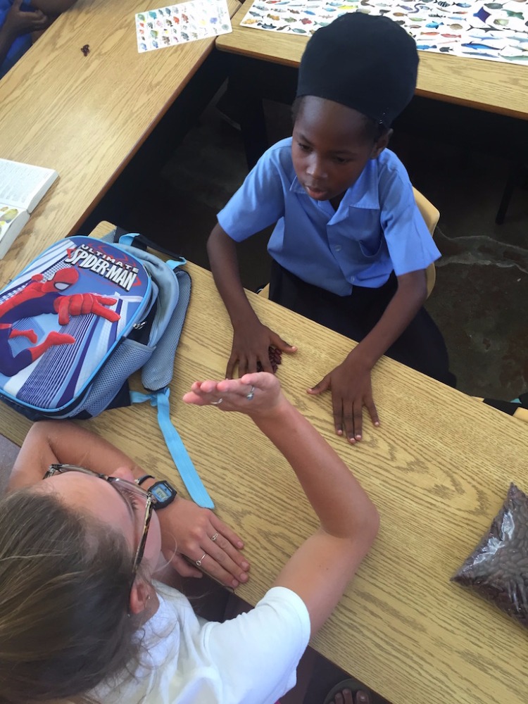 This morning we woke up a half an hour early in order to make sure we were not late for our very first teaching experience in the Caribbean. We are notorious for being late. The plan for the day was to go to the “Grand Roy Elementary School” and teach 1st and 2nd graders all about living on a boat, parts of Argo, and invasive species of marine life. I was lucky enough to be able to spend my birthday with all of these kids, and I got Happy Birthday sung to me by all of the students. We created a PowerPoint presentation with pictures describing our everyday life on Argo. Following the presentation, we were split into two groups and organized fun activities to get the kids involved and motivated to learn about Argo and marine life. One group did an activity with beans to teach about invasive species of marine life. The other group did a “Skipper Says” game (Simon says), which involved the kids needing to know the different parts of the boat. After we finished at the school, we spent the day in St. George, exploring and eating the local cuisine. We came back to a delicious teriyaki chicken dinner waiting for us, cooked by our lovely staff. To top the night off, we had a delicious birthday cake with my favorite cream cheese frosting made by our baker, Carolyn. We ended our day with a Seamanship class taught by Eric, and learned about buoyage and more knots!
